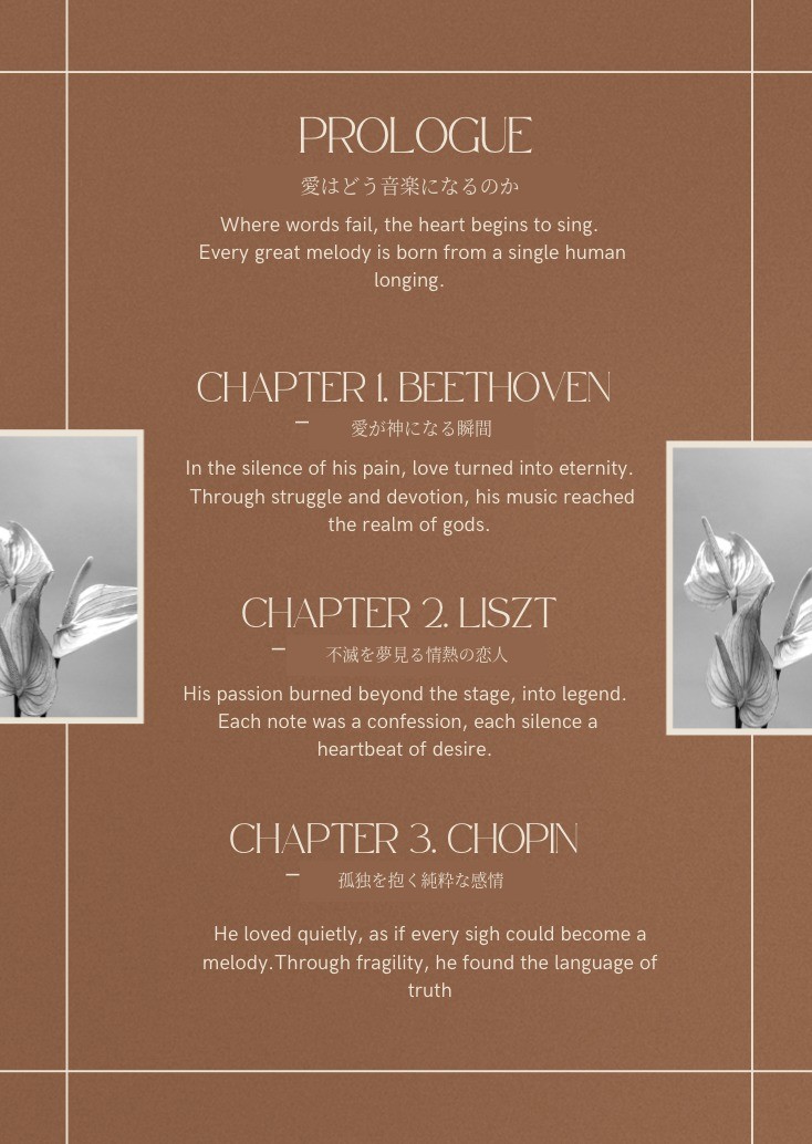 5人の作曲家とその代表曲、そして彼らの愛の物語を収めました。