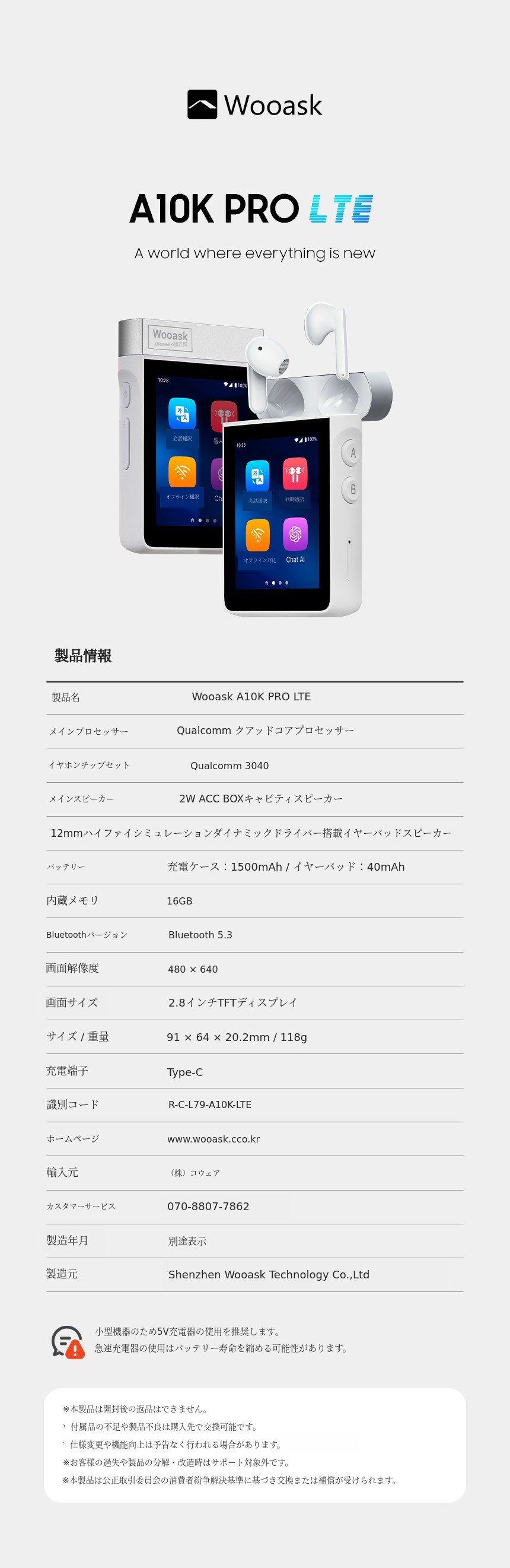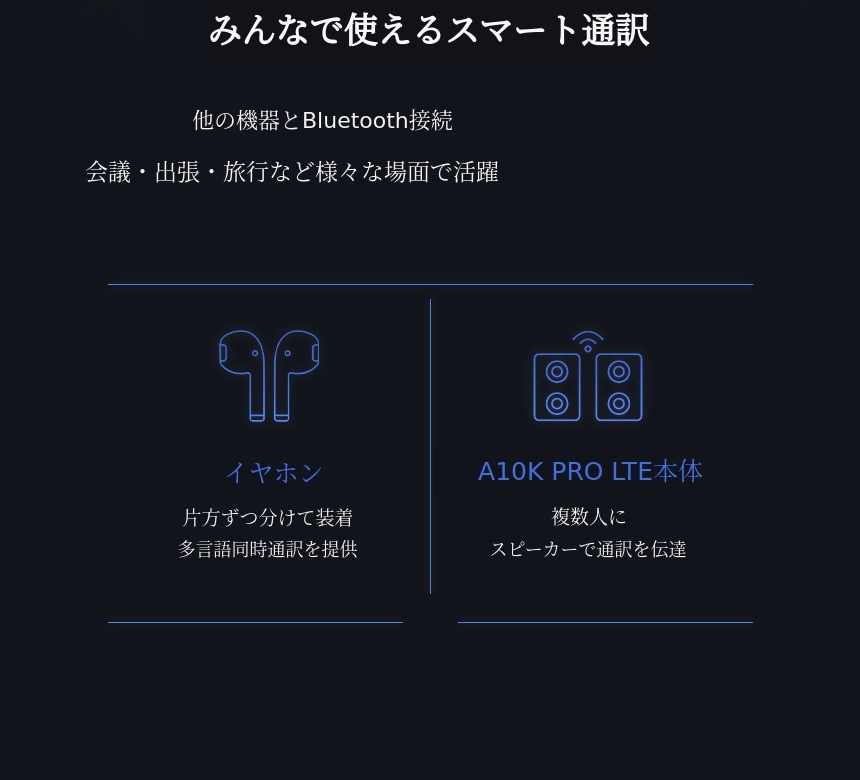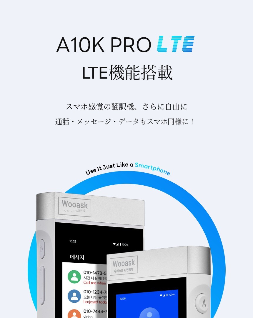 さらに進化したAI翻訳機 ウエアスク A10K PRO LTE 世界中どこでもAI通訳、通話、ChatGPT、データ共有、音楽ストリーミングをこれ一台で オフラインでも16カ国語を標準搭載