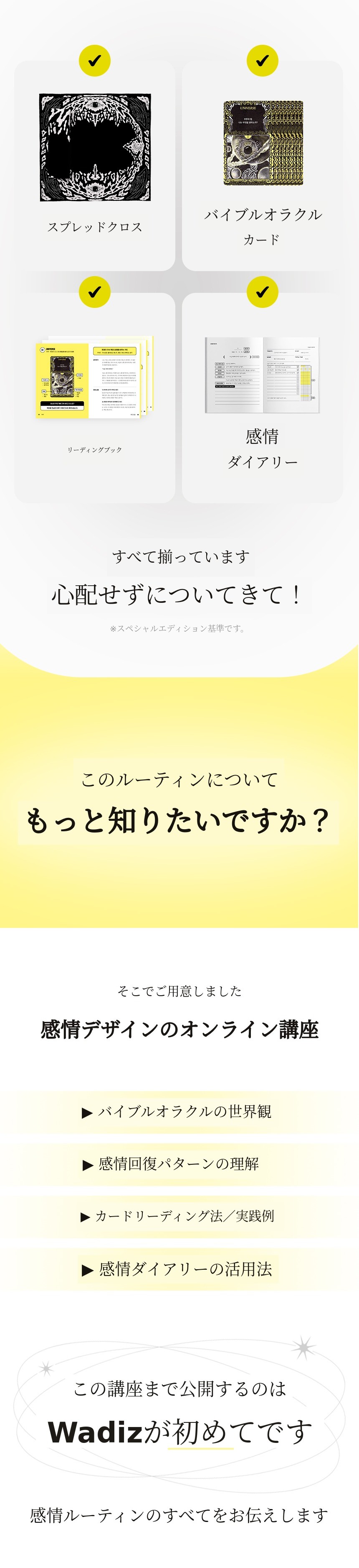 A. 本プロジェクトはWadiz限定ファンディングです。バイブルオラクルカードおよび感情デザイン講座は今回のファンディング以降、別途販売の予定はありません。つまり、今回が唯一のチャンスです。