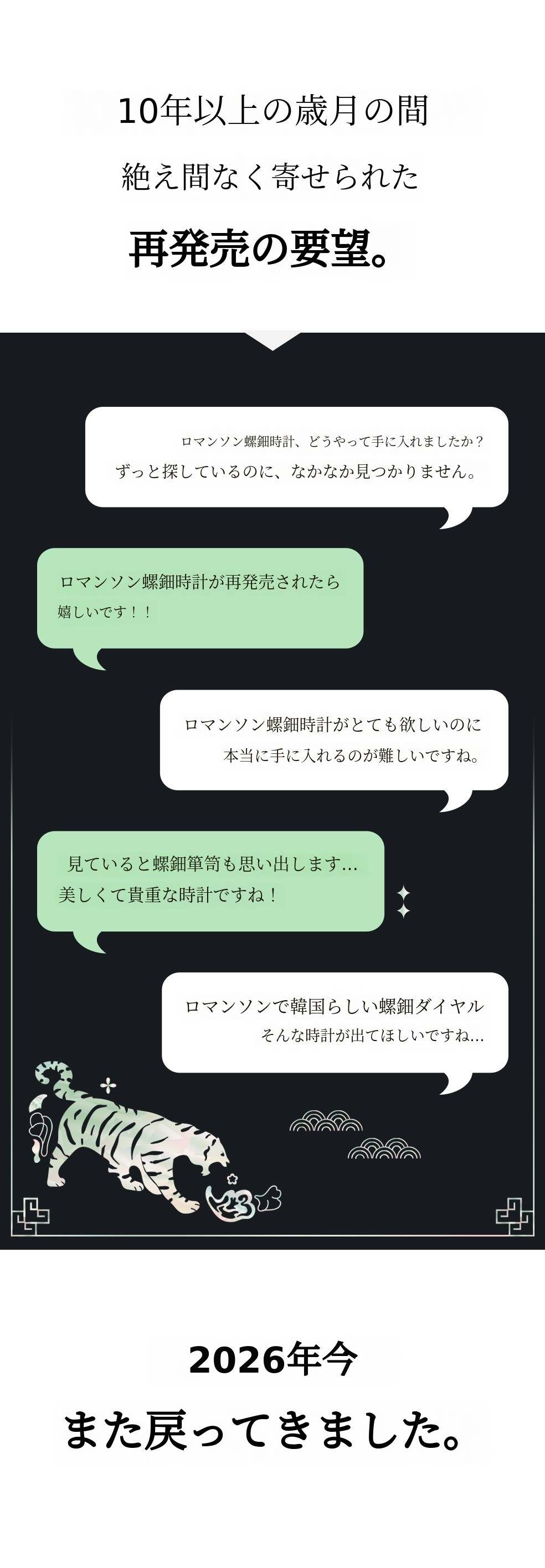 1. ⌚ ロマンソン真珠母時計 - 伝統美を込めた高級な真珠母ダイヤル時計です 2. 🌟 伝統と現代の調和 - 韓国伝統模様と現代デザインの融合です 3. 🎁 限定版単独公開特典 - 50セット限定、割引価格での販売です