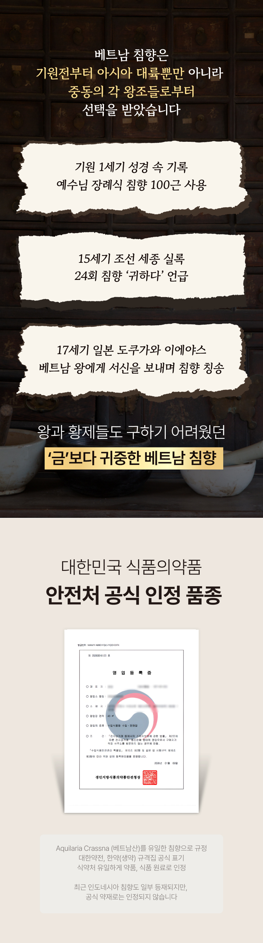 베트남산 침향 중에서도 최상급 품종으로 인정받고 있으며,