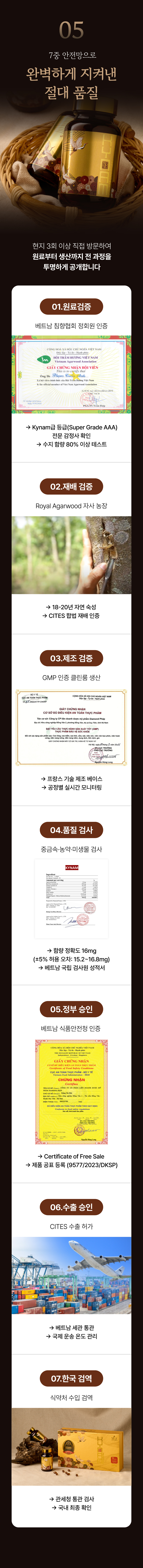 20년 이상 생육된 침향 나무만 엄선, 모든 침향 나무는 고유 생산 관리