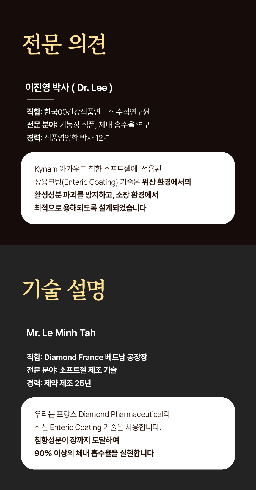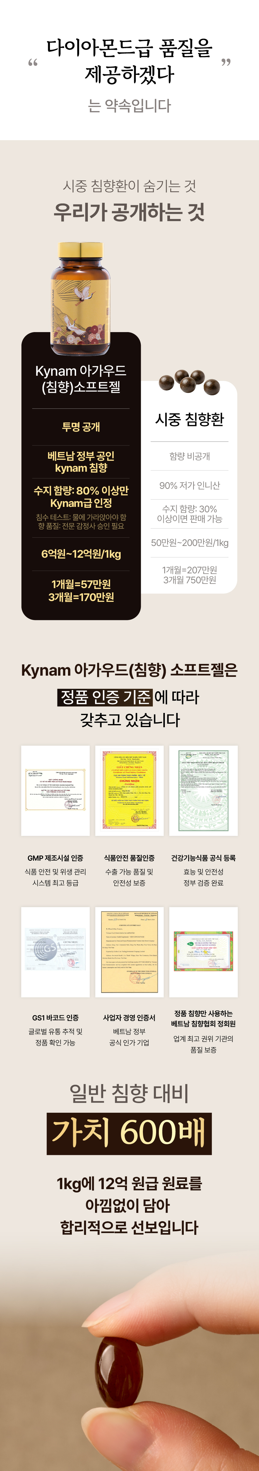 KYNAM 아가우드(침향) 소프트젤은 단순한 건강식품이 아닙니다. 20년 교육자의 철학과 3년 연구자의 집념이 담긴, 당신과 사랑하는 사람의 건강을 책임지기 위한 약속입니다.
