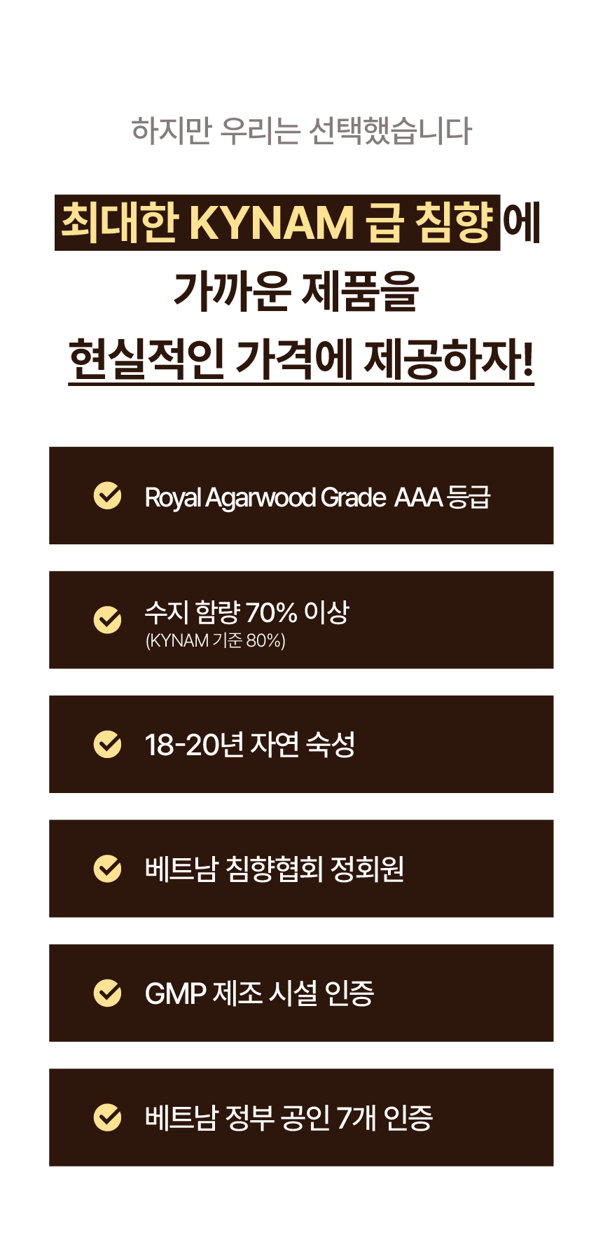 A. 베트남 정부가 인정한 실제 KYNAM급 의 Royal Agarwood Super Grade AAA 등급으로