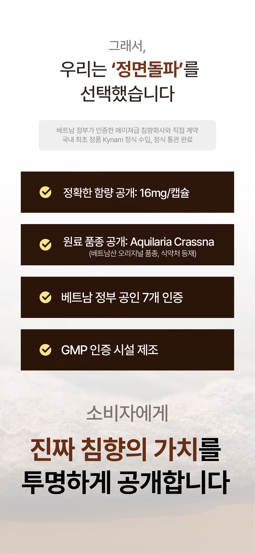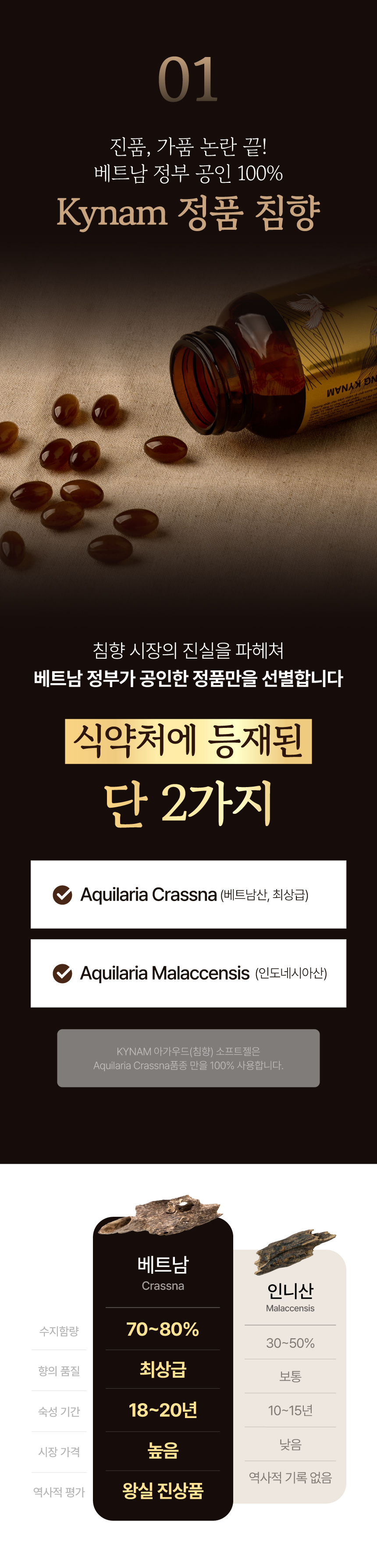 ✓ 100% 투명성: 정확한 함량 공개(16mg), 원료 품종 공개(Aquilaria Crassna)
