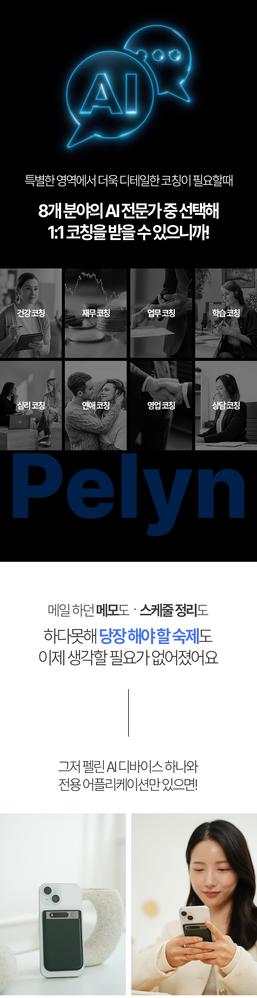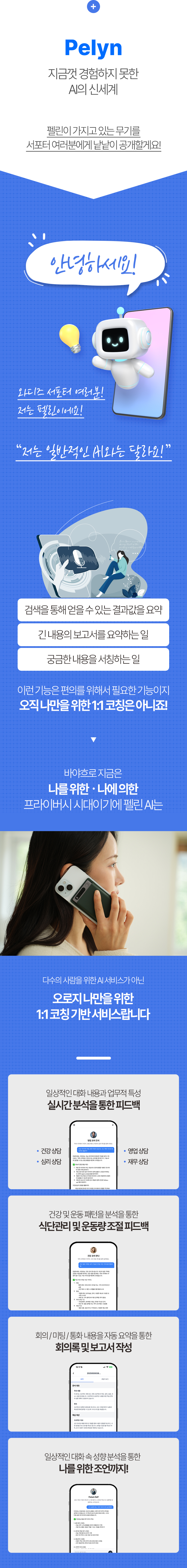 Pelyn AI 코칭은 데이타몬드의 정교한 AI 기술력과 전문 코치의 휴먼 터치가 결합된, 완전히 새로운 차원의 1:1 코칭 서비스입니다. 데이타몬드의 전문성은 서포터님들의 성장을 위한 가장 강력하고 든든한 조력자가 될 것입니다.
