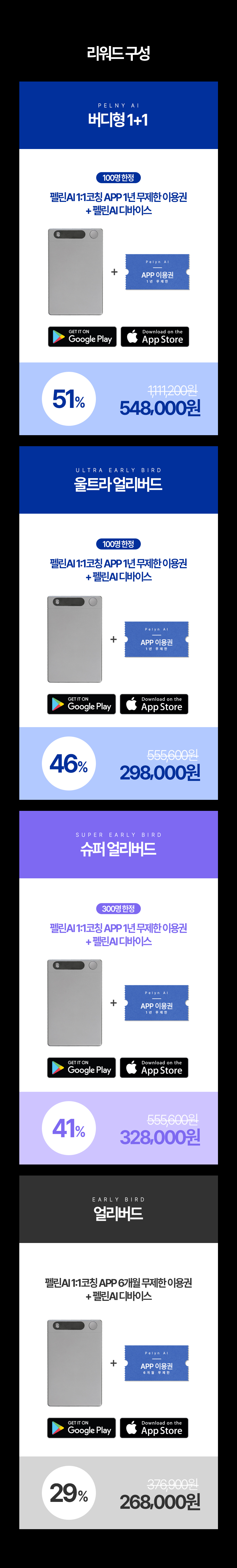 - 미래의 나를 설계 할 독점적인 혜택: 후원자 전용 요금제 할인, 맞춤형 코칭 스타일 선택 등 초기 투자자만을 위한 혜택을 제공합니다.
