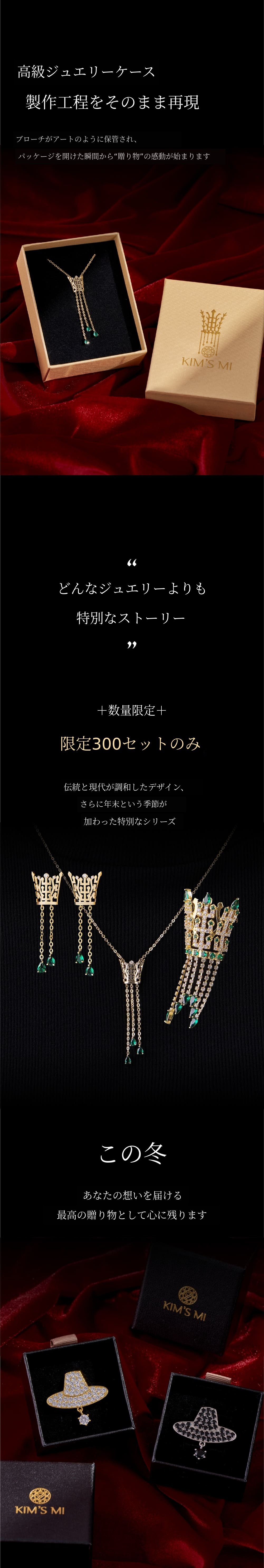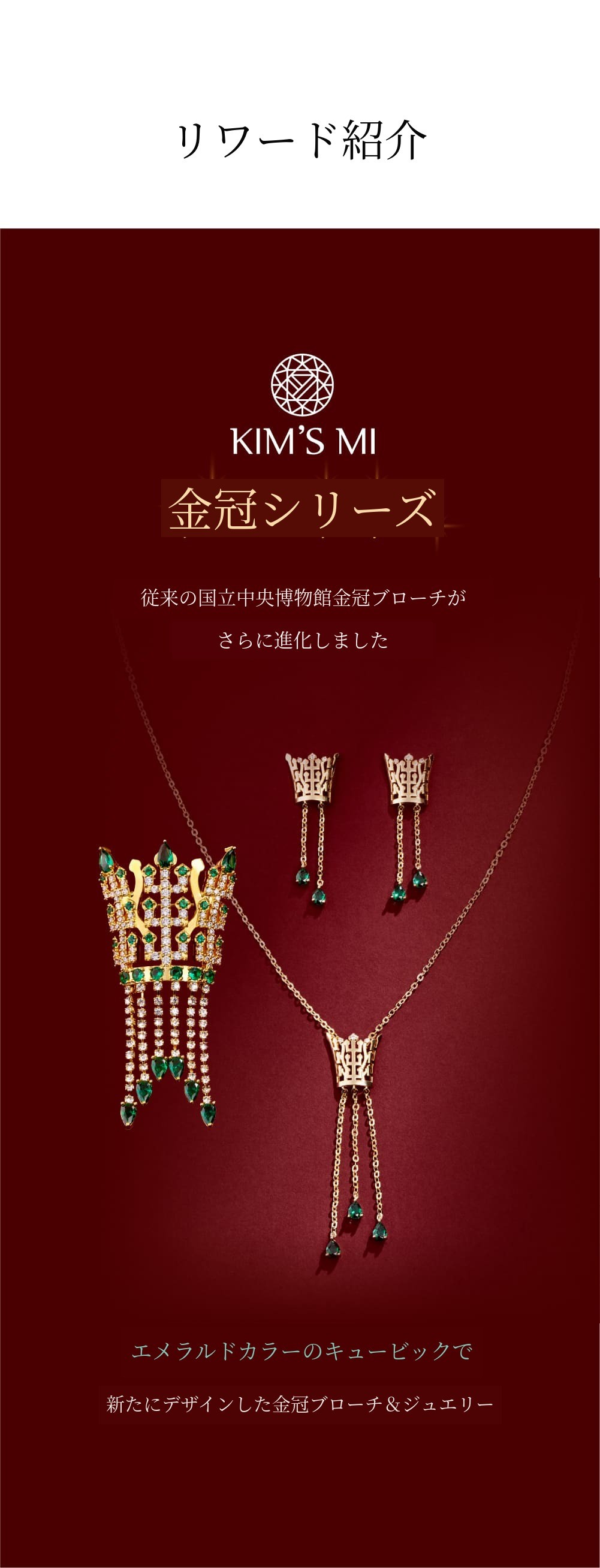 宝石鑑定士であり高級ジュエリーデザイナーのキム・ミギョン代表が設立したKIMSMIは、「韓服、金冠、カッ、花、鳥、鶴、蝶」など韓国の象徴的な要素を現代的な感覚で再解釈し、伝統が持つ独自の品格と洗練された美感を調和させたジュエリーアートブランドです。
