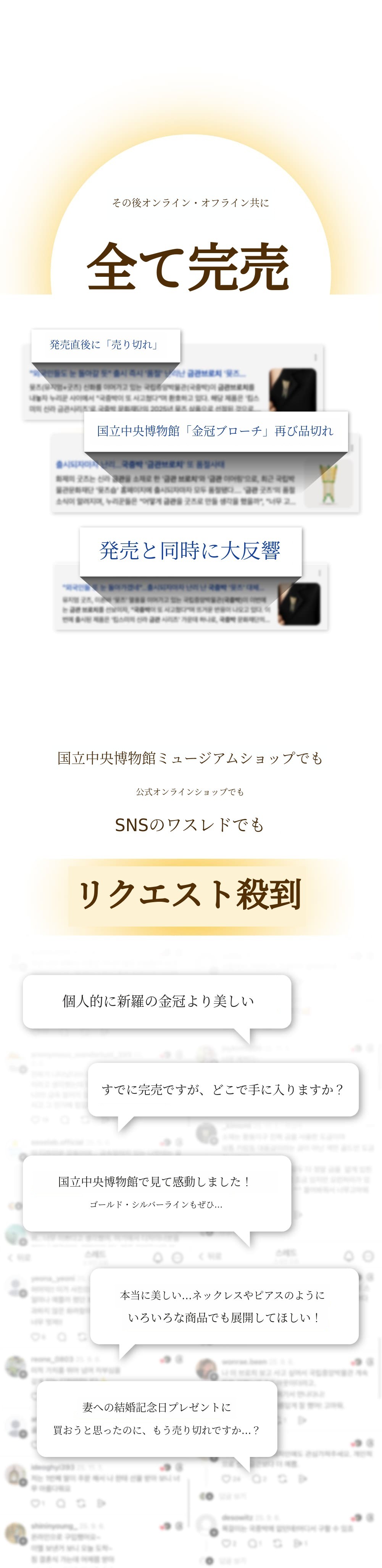 国立中央博物館公式グッズとして発売された新羅金冠ブローチに寄せられた大きな関心とご声援のおかげで、多くのお客様からシルバー・ゴールド素材のネックレスやイヤリングなどジュエリーラインの制作をご要望いただきました。