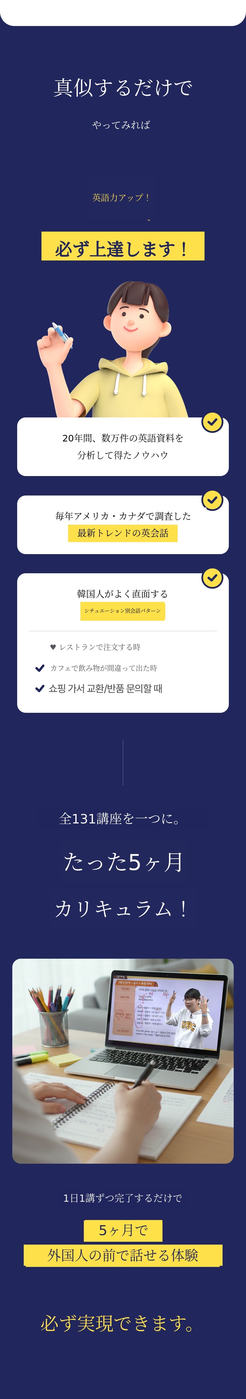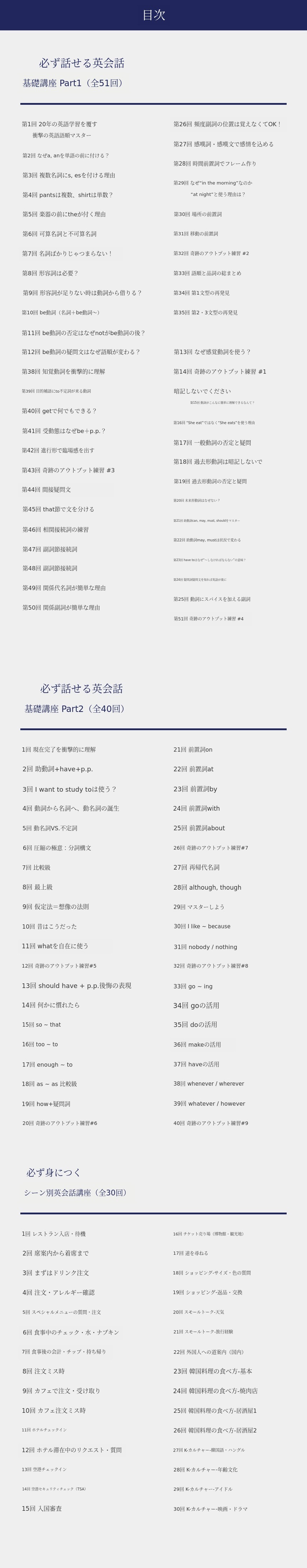 Q1. 英語がほとんどできませんが、この講義を受講しても大丈夫ですか?A. はい、大丈夫です!英語の基礎が弱い方でも、基本講座から受講すれば楽しく英語を理解できます。