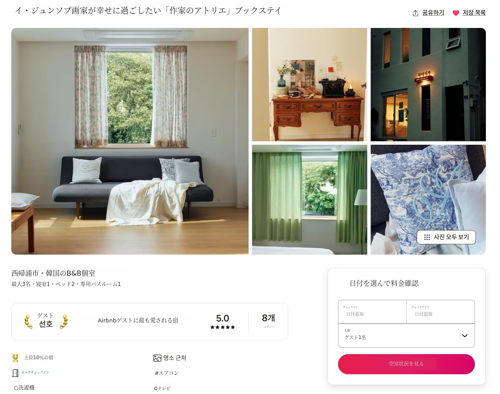 イ・ジュンソプの住居が見える宿泊施設で作家のインスピレーション を受けてください。