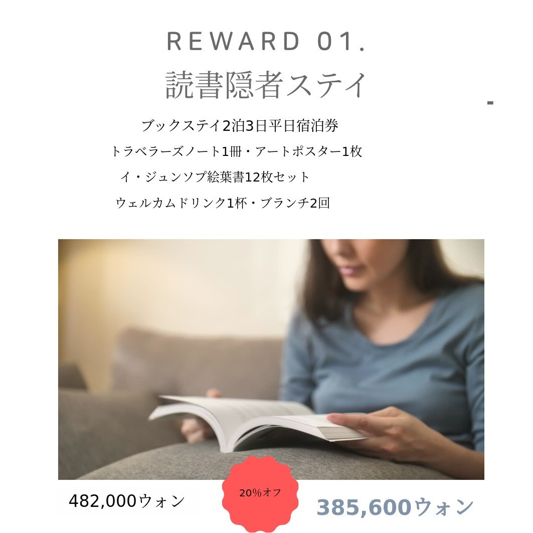 - 3階の宿泊施設に滞在し、夜は2階で大型プロジェクターによる映画鑑賞と読書。2フロアを利用できる特典