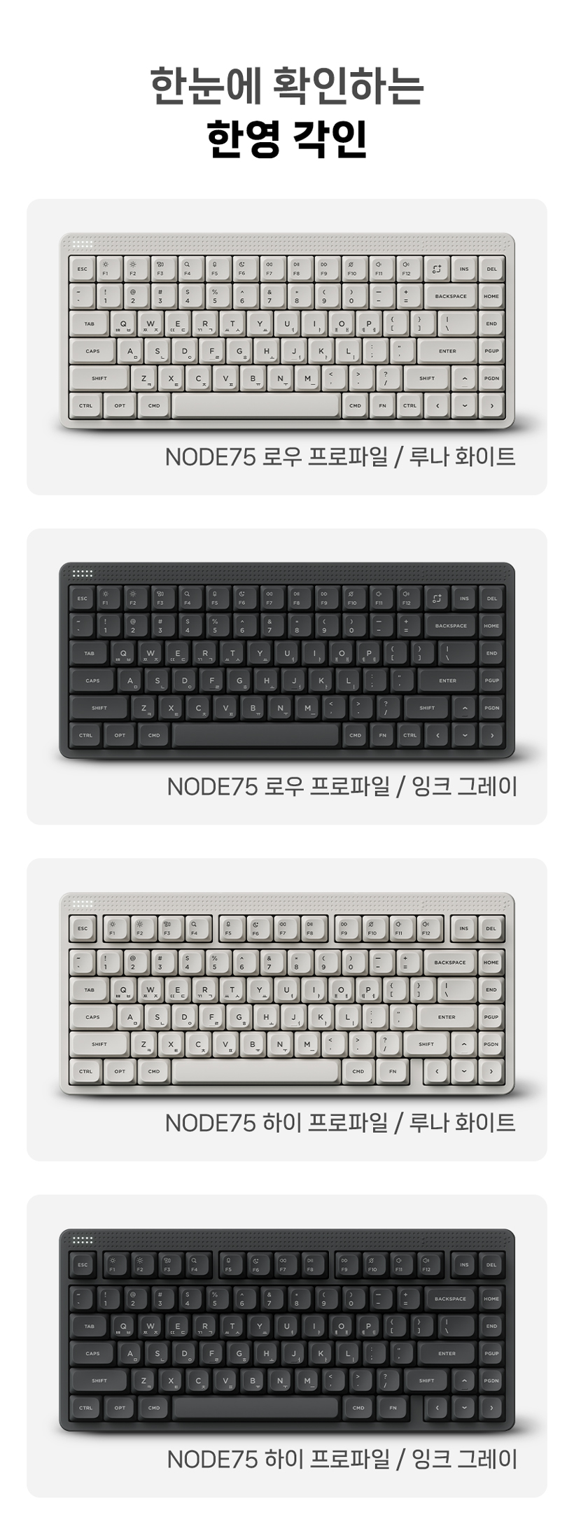 NODE 모델의 특징은 모던한 도트 디자인의 감성과 처음 도입된 터치바 기능, 그리고 무엇보다 누피 기계식키보드의 성능을 탑재한 가성비 있는 시리즈입니다. 사무용, 일반용, 게이밍용 두루 호환하여 사용할 수 있는 기계식키보드로 NODE를 적극 추천 드립니다.