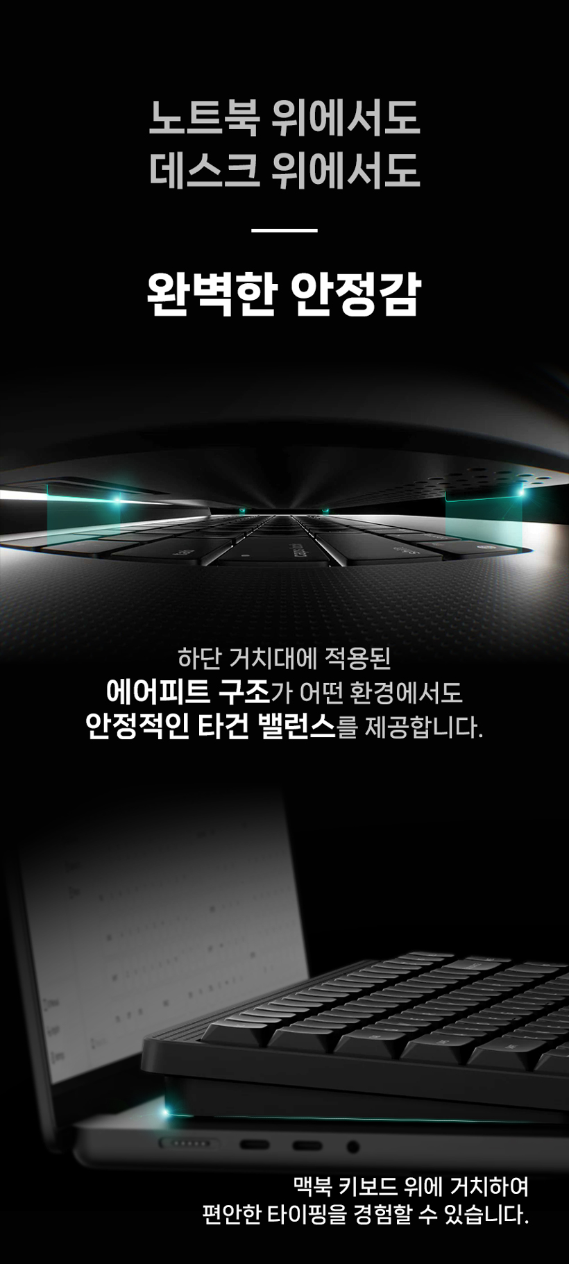 기본 키보드 레이아웃은 윈도우/맥과 동일하지만 토글버튼으로 모드 변경을 통해 Window/맥 OS 사용 환경으로 변경할 수 있습니다. 따라서, 맥북, 글로벌 노트북 제조사의 여러 노트북, 데스크탑 등 유선 연결이 가능한 디바이스와 함께 사용 가능합니다. 물론 패드나 스마트폰에도 블루투스로 연결이 가능합니다.