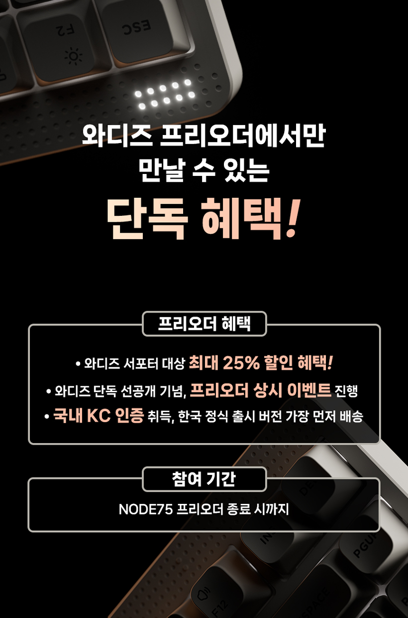 누피는 와디즈와 항상 함께하고 있습니다. 신제품은 국내에서 와디즈에서 가장 먼저 선보이고 있으며, 서포터 분들의 소중한 의견을 경청하는 시간을 갖고 있습니다. 누피의 성장을 와디즈 서포터 분들과 함께하여 더욱 친숙하고 믿을 수 있는 메이커로 성장하겠습니다. 누피의 감각적인 디자인과 혁신적인 성능이 반영된 NODE 시리즈, 서포터 분들의 많은 관심 부탁드립니다.