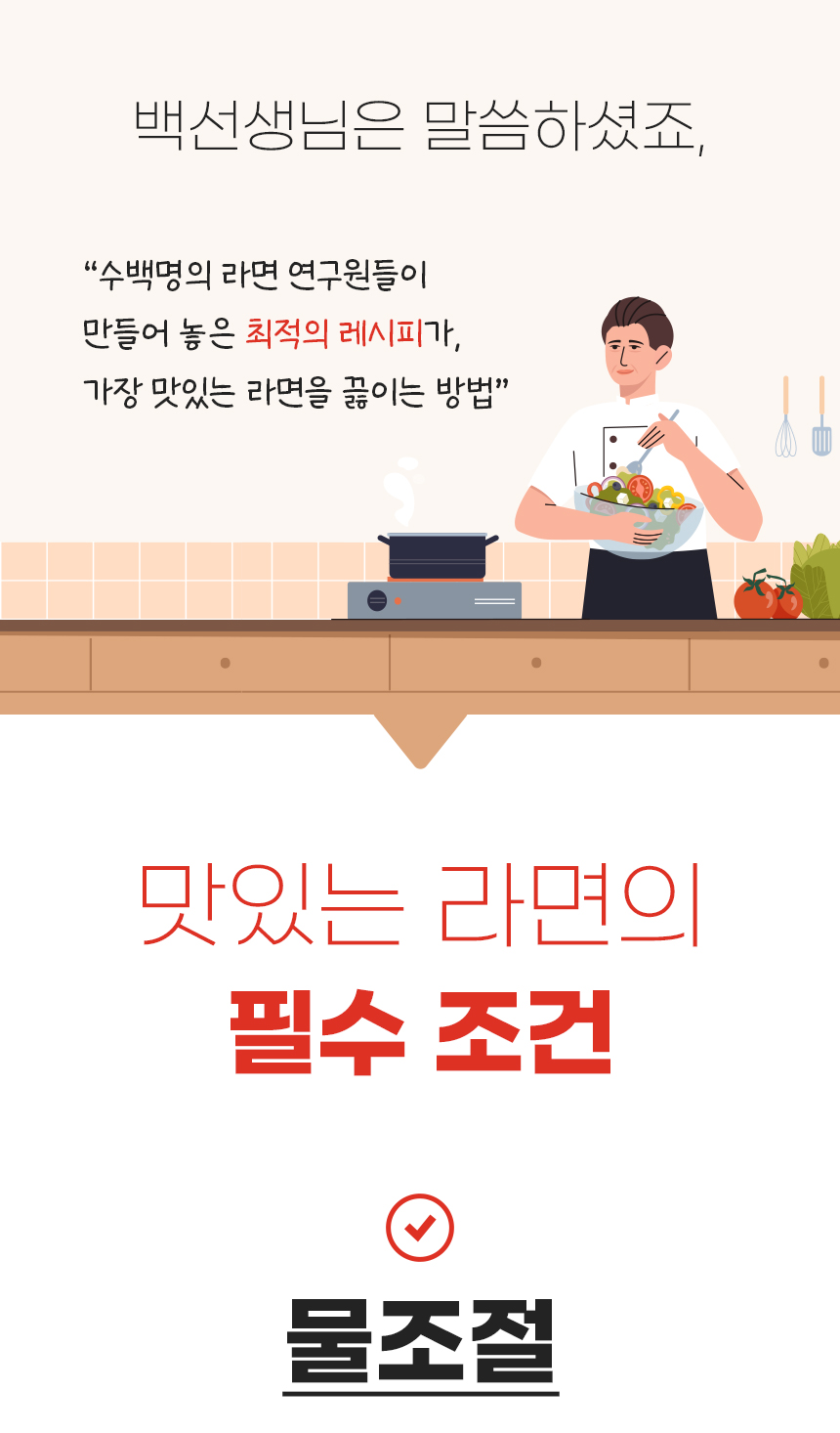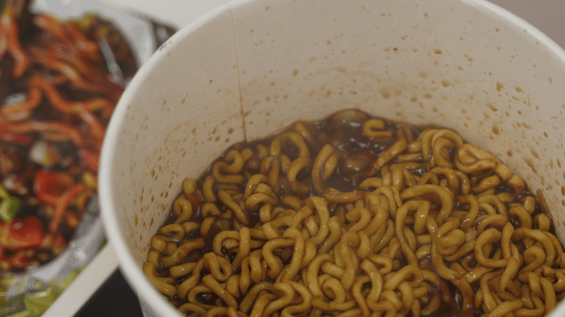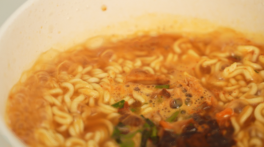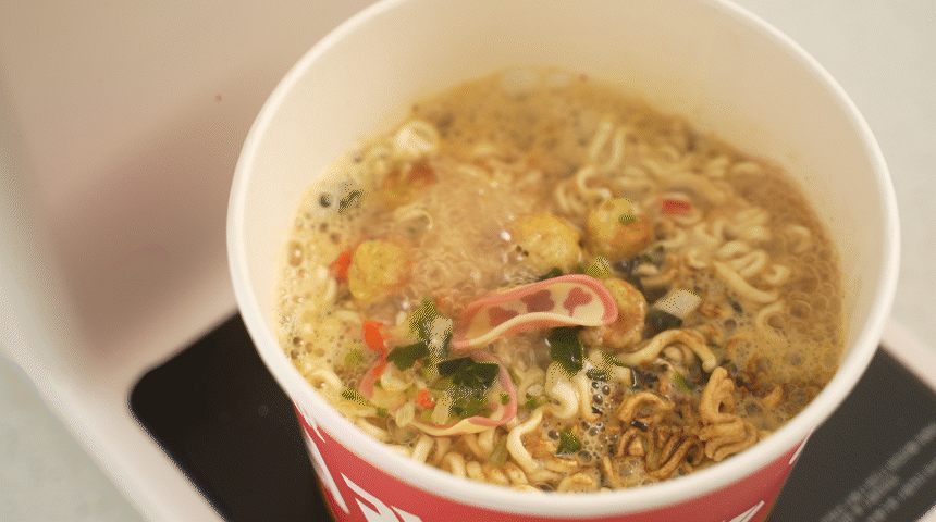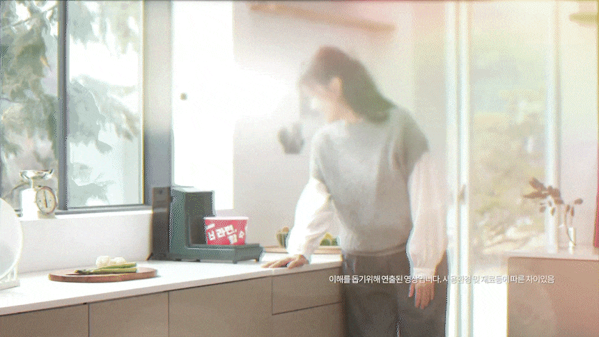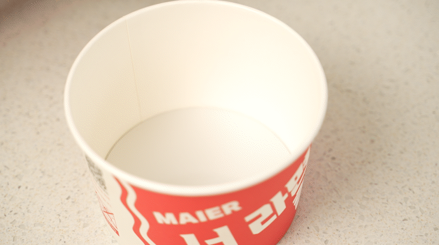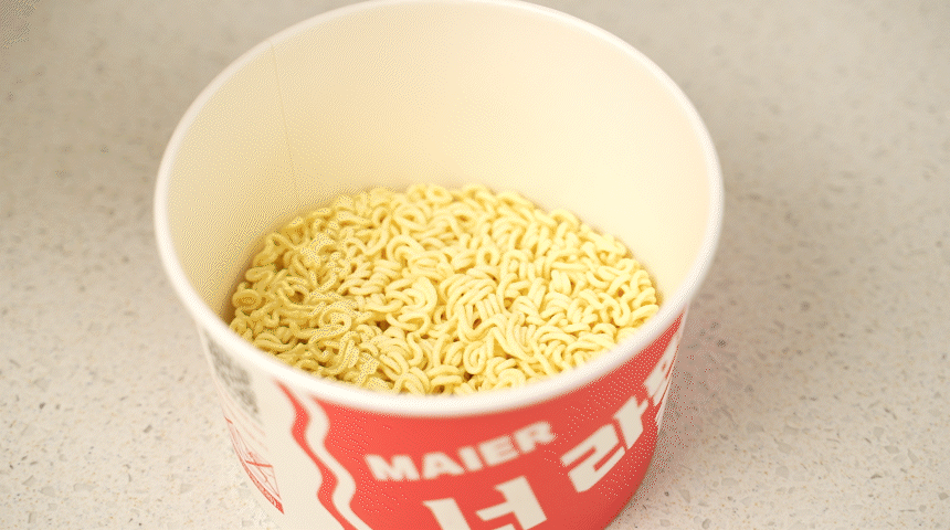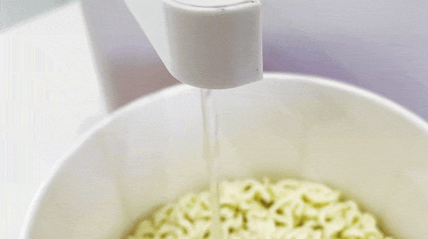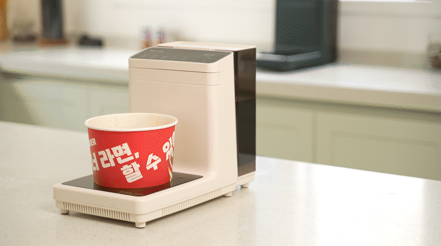 라면을 빨리 끓이기 위한 최적의 온도인 55도의 물을 출수합니다.