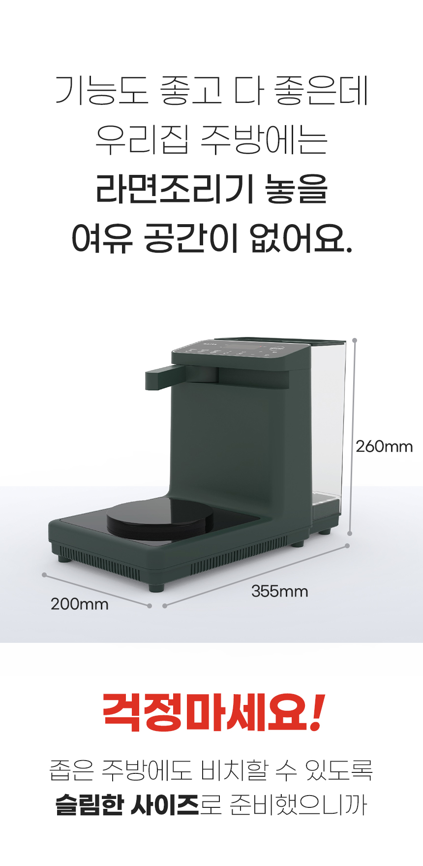 감압식 버튼이 아닌 터치 스크린 패널을 탑재해 가벼운 터치만으로 조리가 시작되는