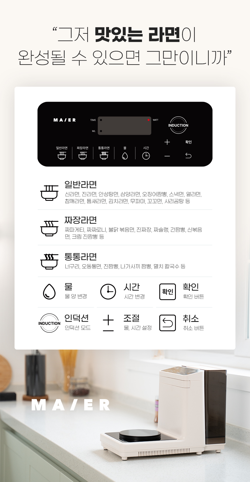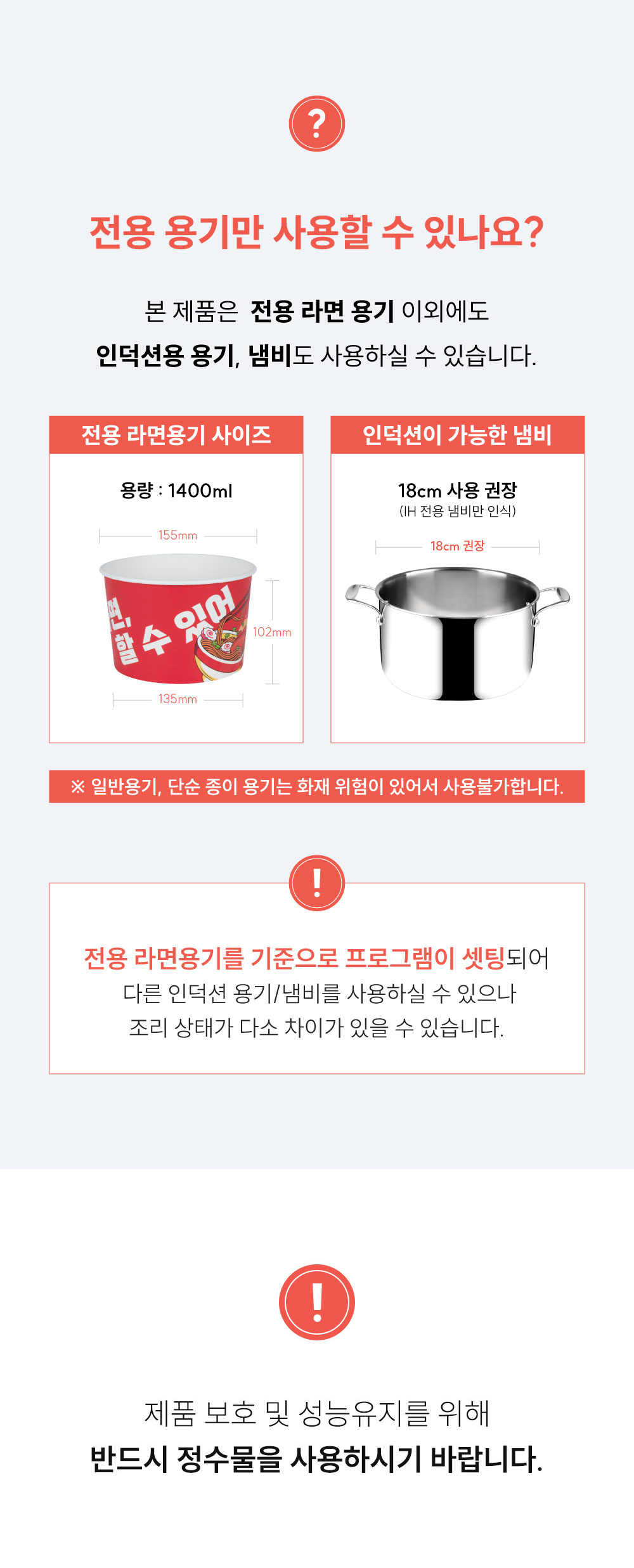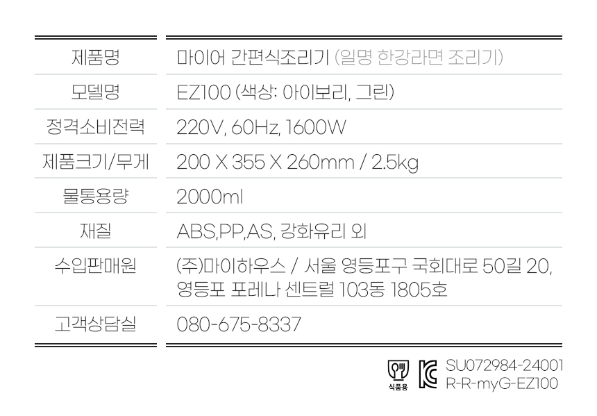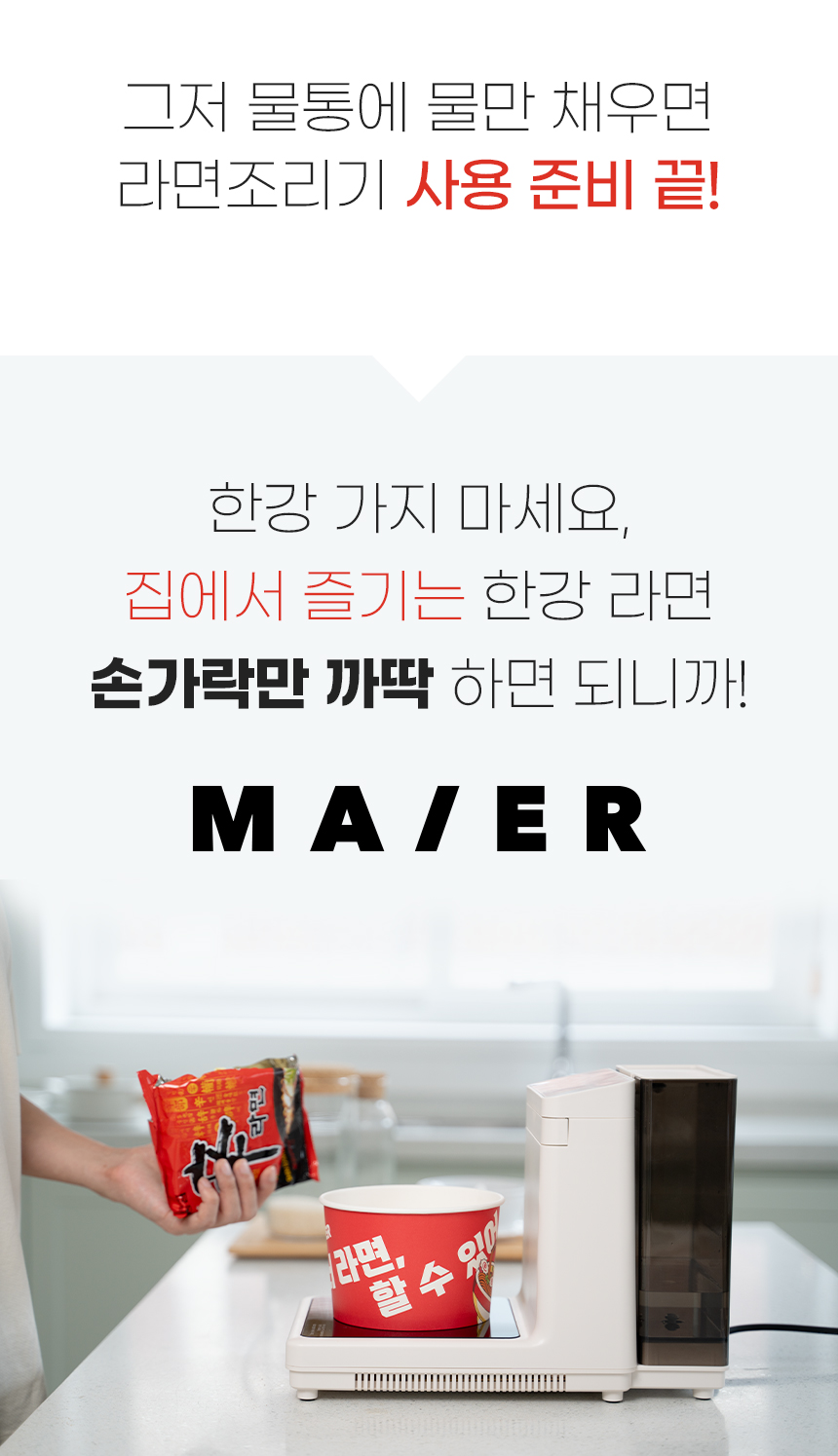 마이어 라면조리기에서 출수되는 물은 찬물이 아닌