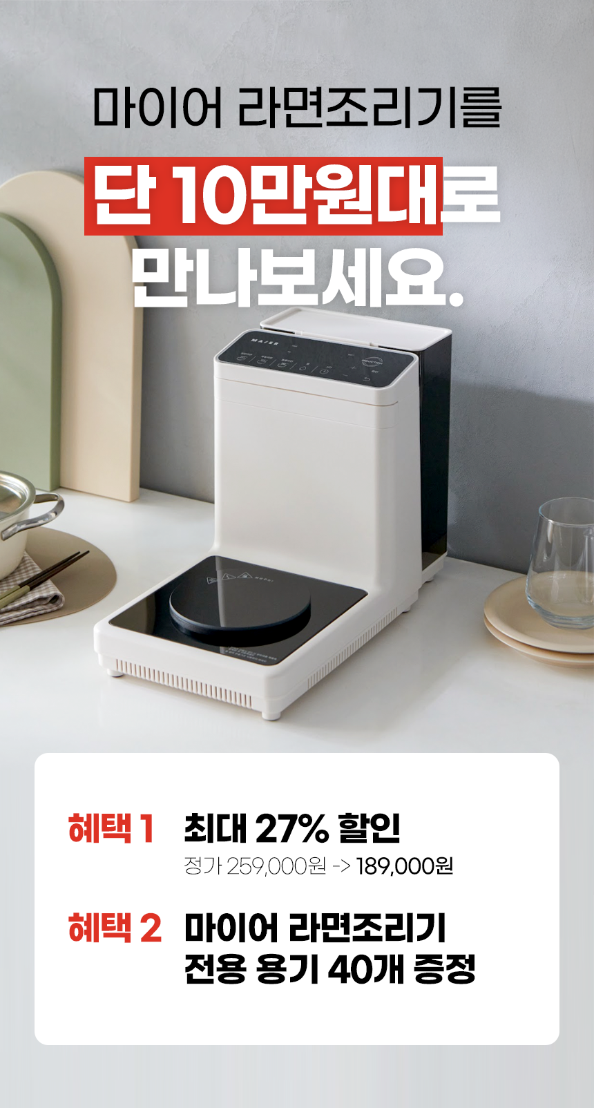 마이어는 'This is Mai Kitchen Life 나의 가족을 위한 나의 요리, I - Mai - Me 나의 가족을 위한 나만의 쿠킹 스킬'이라는 가장 최적화된 주방 가전이 되자는 모토 아래 사용하시는 모든 분들이 만족하는 다양한 제품을 선보일 예정입니다.