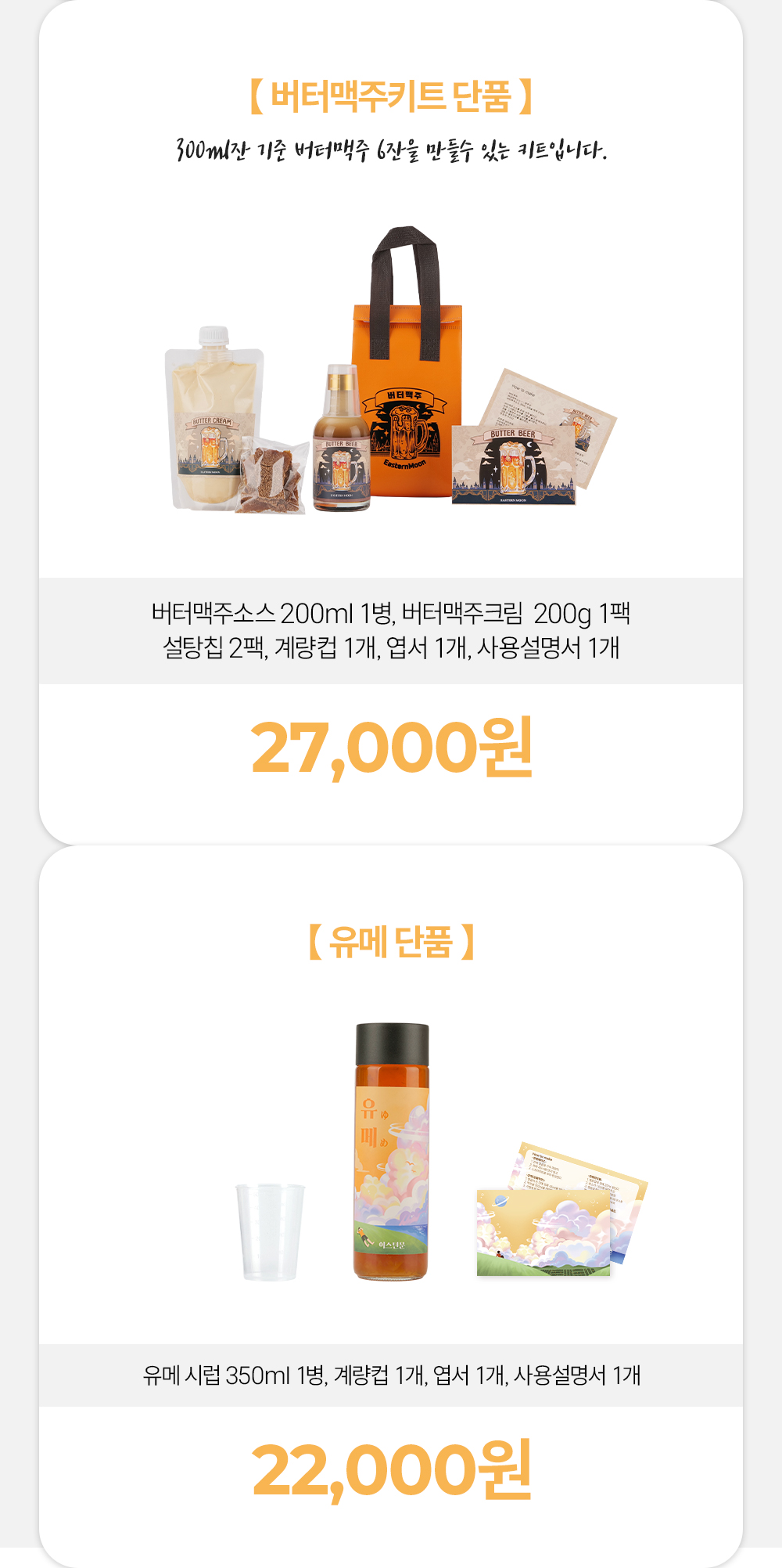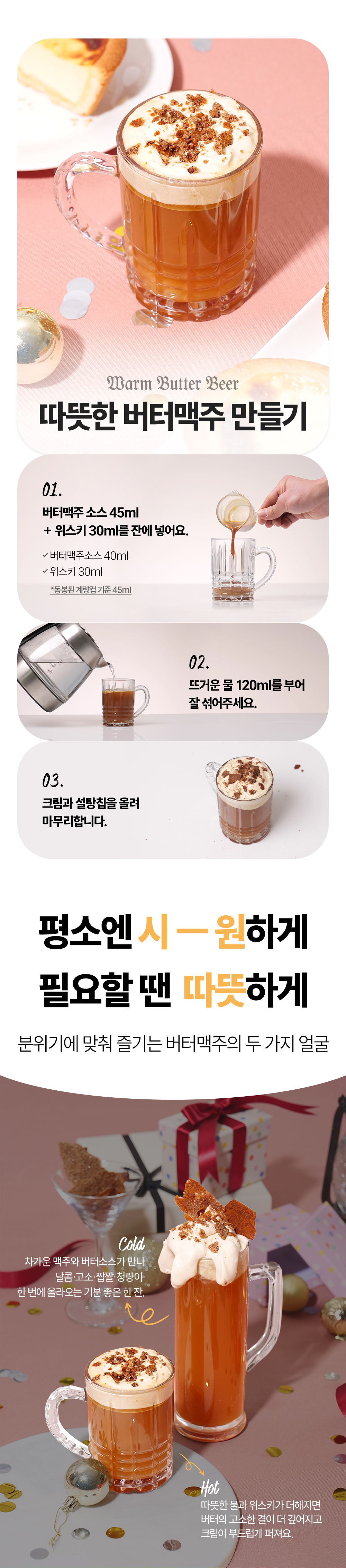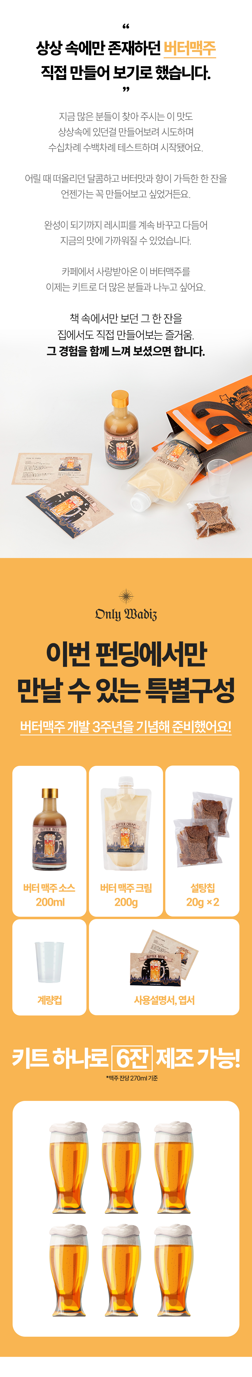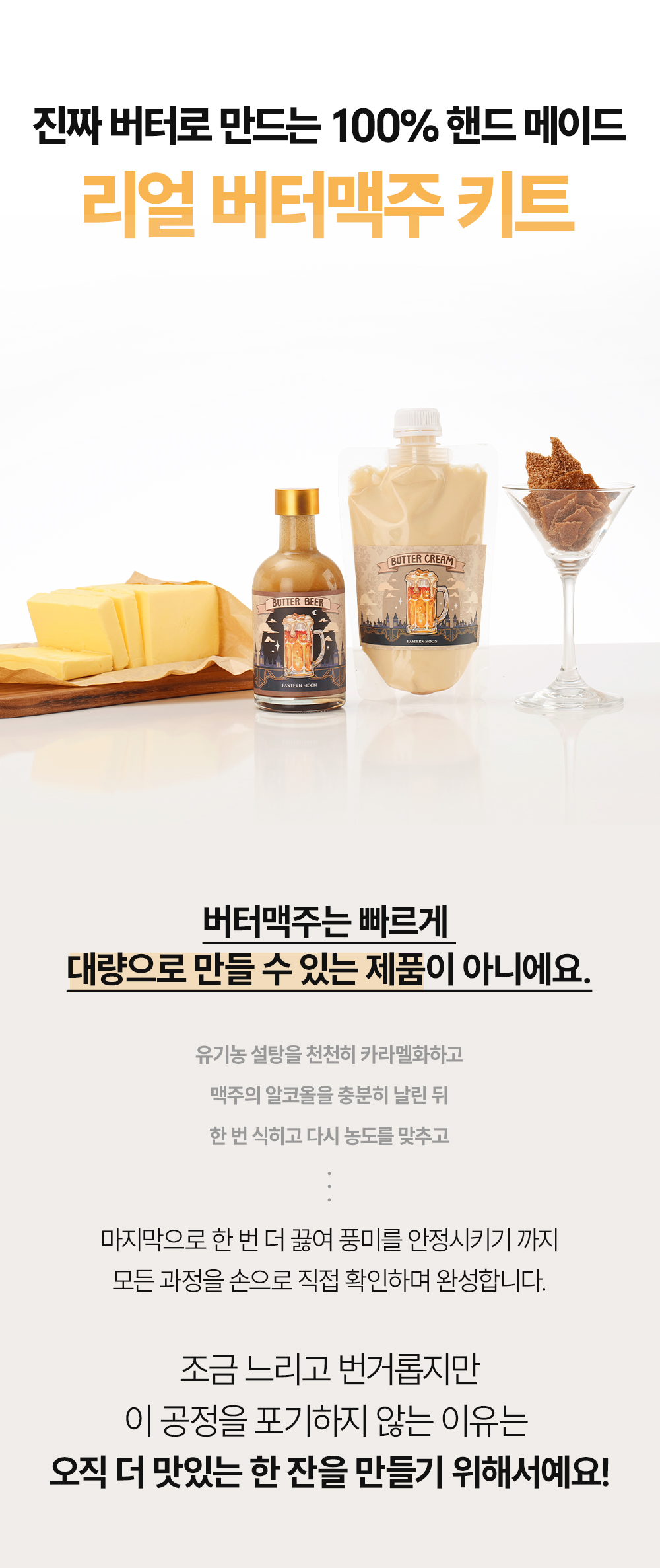 어느새 버터맥주가 3주년을 맞이 하였고 그동안 사랑해주신 분들 덕분에 집에서도 즐길 수 있는 키트를 준비해볼 용기가 생겼습니다. 처음 준비할 때는 괜히 떨리기도 했지만 더 많은 분들이 이 맛을 직접 경험해보시면 좋겠다는 마음이 컸어요.