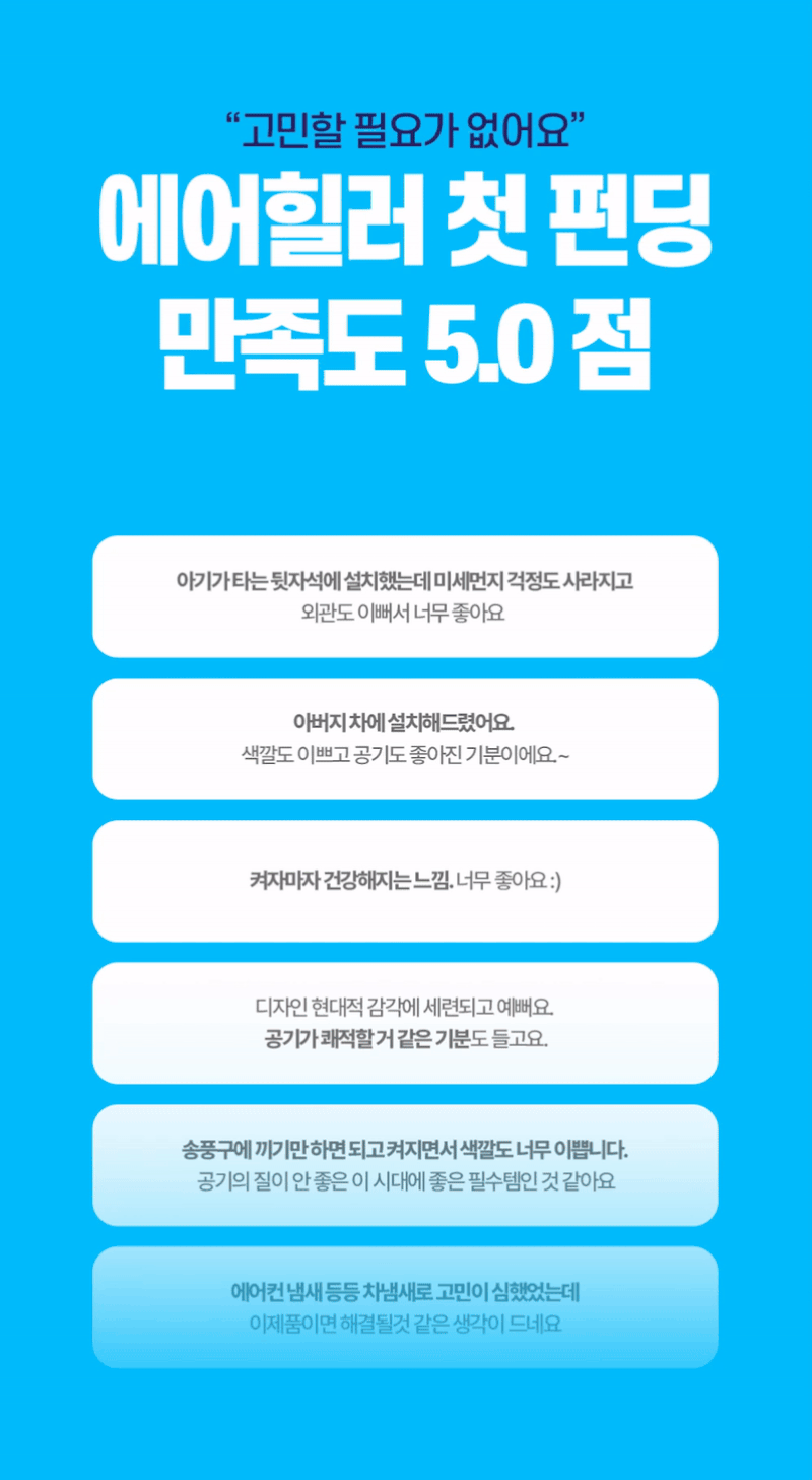 2024.10.31 기준 / 집계 채널 : 와디즈 1차 펀딩 이전 버전의 서포터 후기
