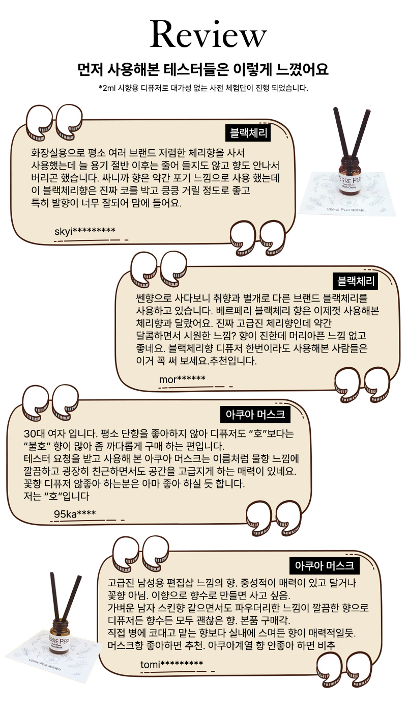 향기로 기억되길 바라는 베르페리는 앞으로도 좋은 향의 제품을 선보일 예정입니다.