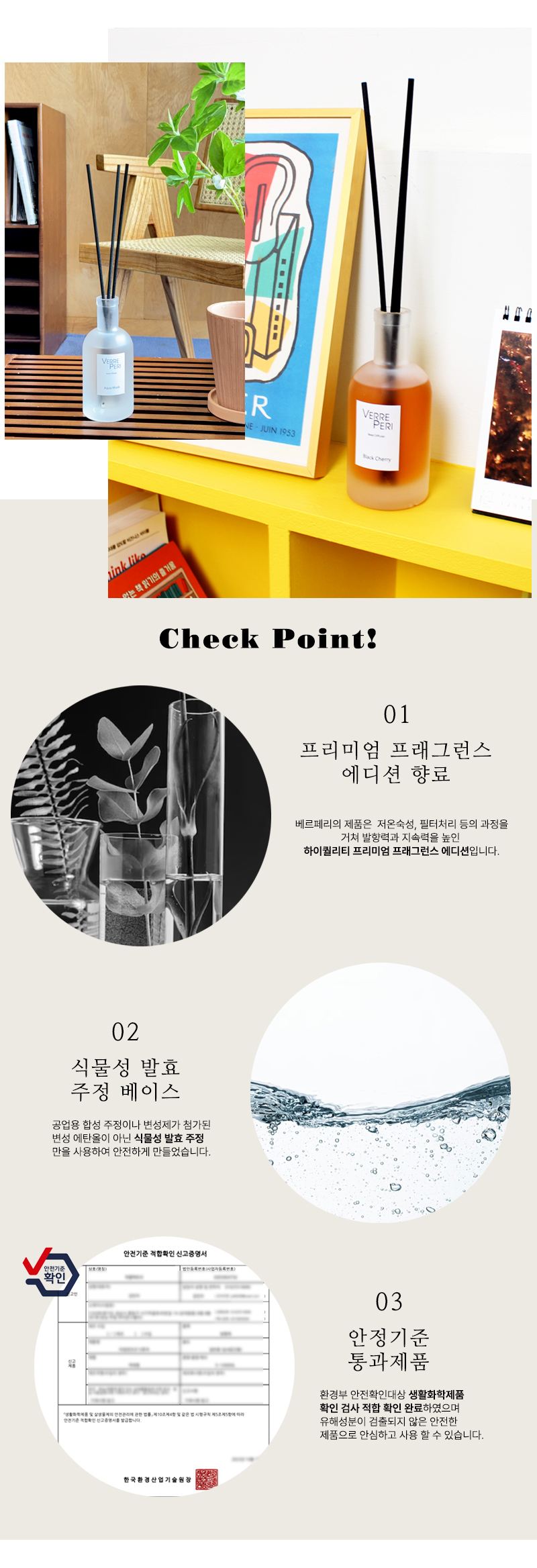 베르페리(VERRE PERI)는 프랑스 그라스(grasse)지방의 세계적인 퍼퓸어가 고급 원료만 엄선하여 블렌딩하고 저온숙성, 필터처리 등의 과정을 거친 하이퀄리티 프리미엄 프래그런스 브랜드입니다.