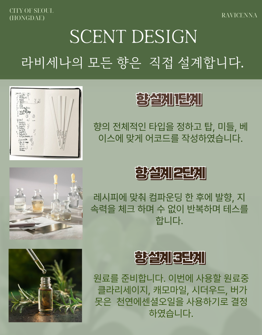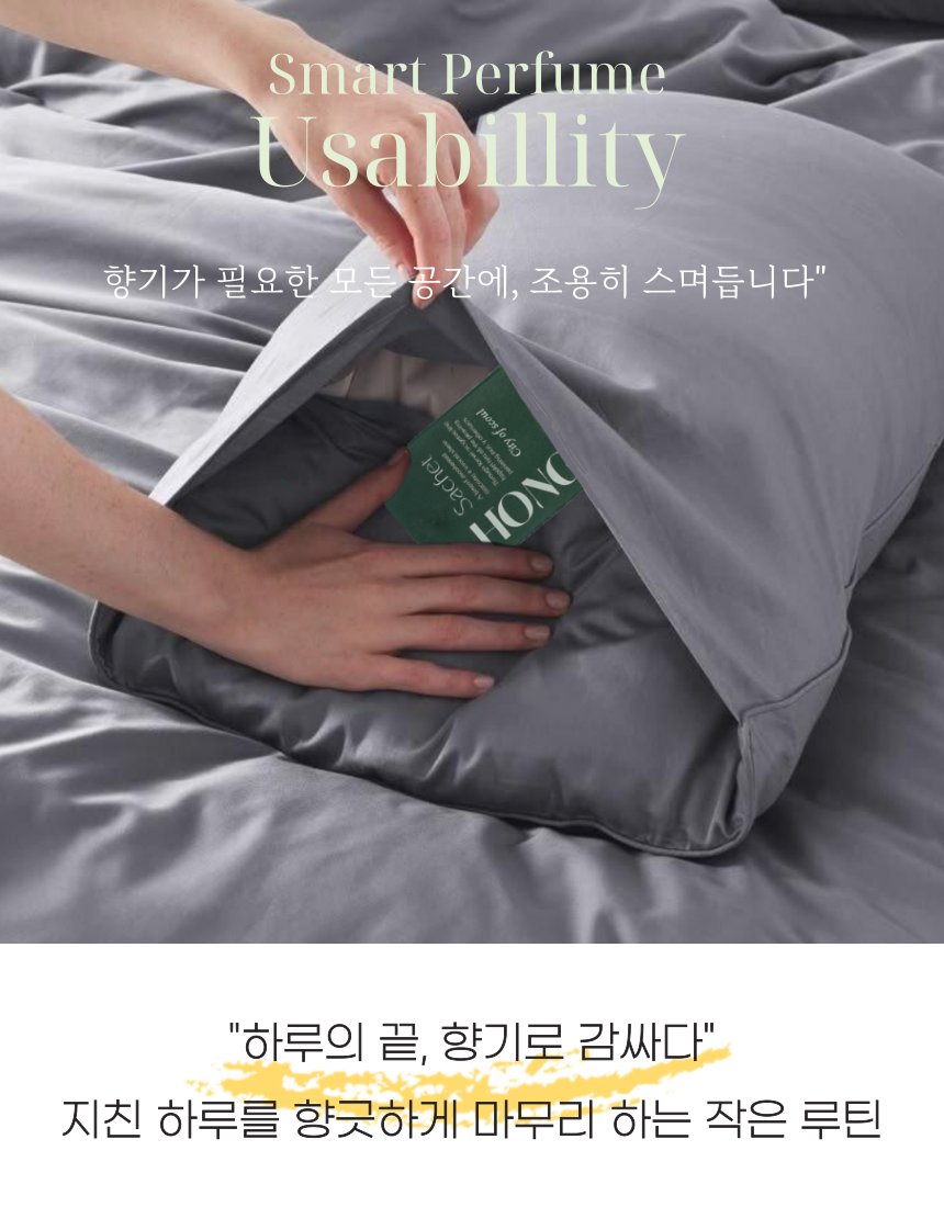향은 특별한 날에만 쓰는 사치가 아니라 매일의 공간과 기분을 조용히 바꾸는 힘이 있다고 믿습니다. 그래서 저는 뿌리는 향수 대신, 자연스럽게 머무는 향을 연구해왔습니다.