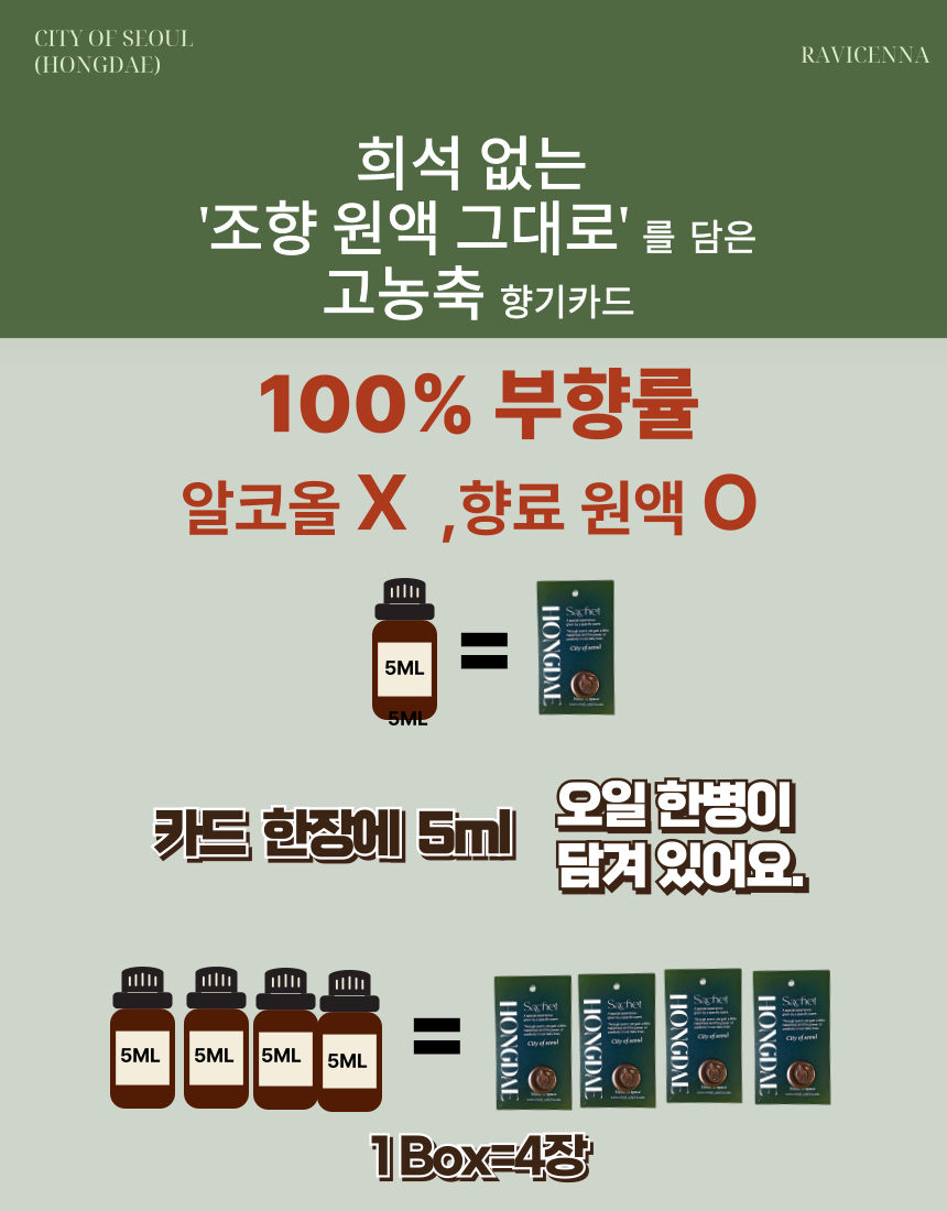 알코올 없이, 향료만으로 완성된 고농축 향기카드