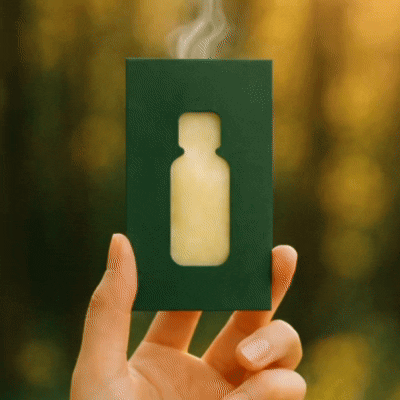 멤브레인의 코팅 재질과 두께를 여러 번 바꿔가며 테스트했고, 그 결과 아무것도 하지 않아도 은은하게, 오래 지속되는 발향을 구현할 수 있었습니다. - 뒷면을 오일 용기 모양으로 타공해 향이 카드 안에 갇히지 않고 자연스럽게 퍼질 수 있도록 했습니다