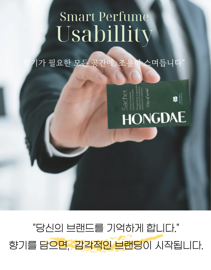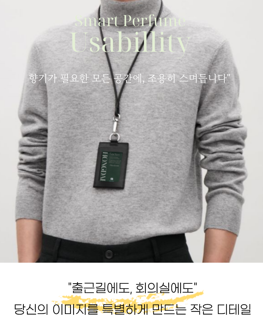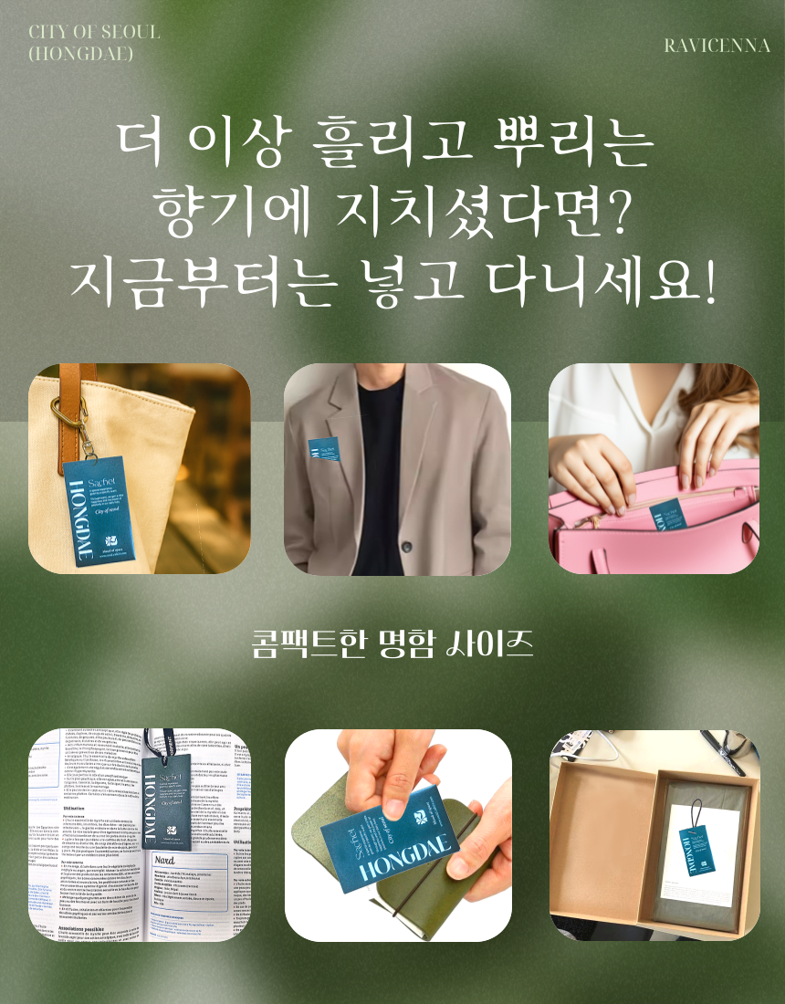 - 명함 한 장 사이즈의 작은 사이즈 덕분에 장소와 상황의 제약 없이 향을 함께할 수 있도록 만들었습니다.