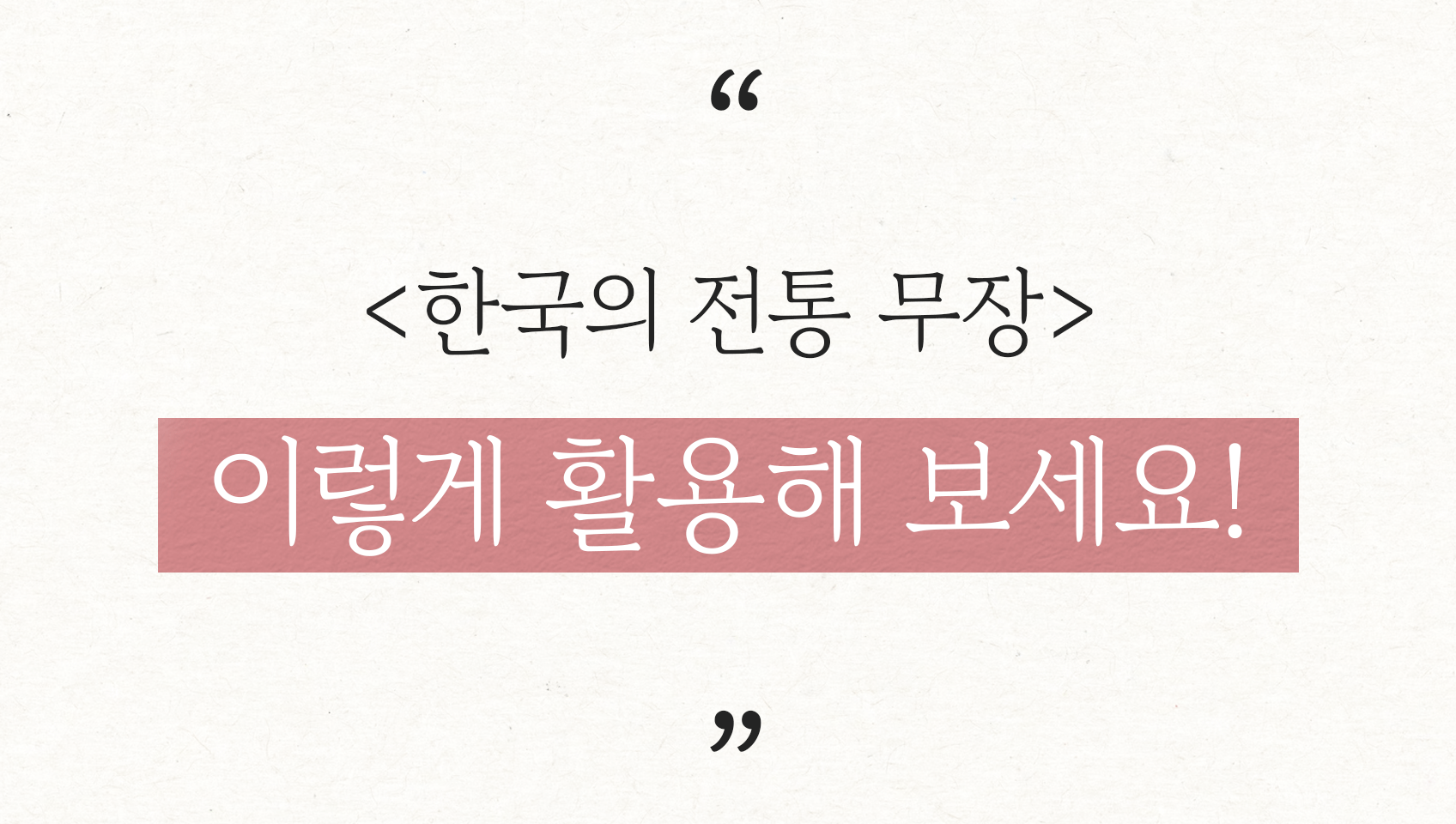 <韓国の伝統武装> を開いて、時代を超えた美しさをご覧になり、アイデアを思い浮かべてみてください。 解説を参考にしても構いません。解説を通じて新しいアイデアが浮かぶこともありますから。