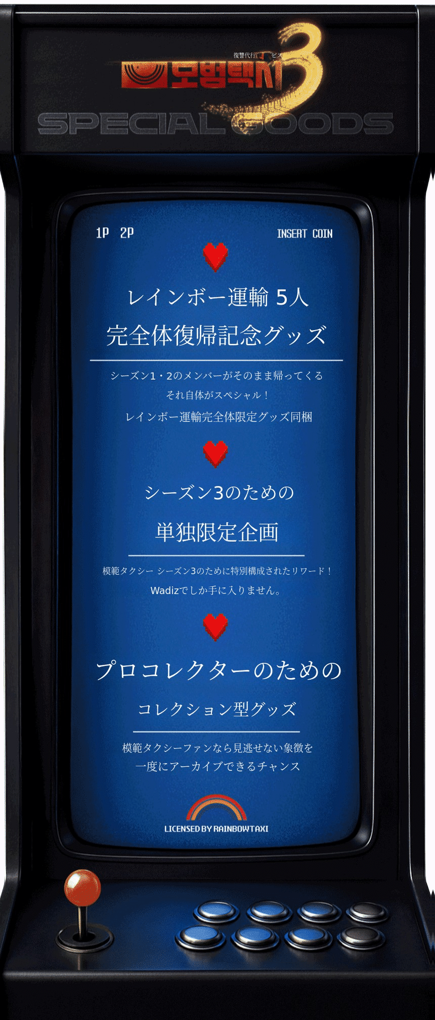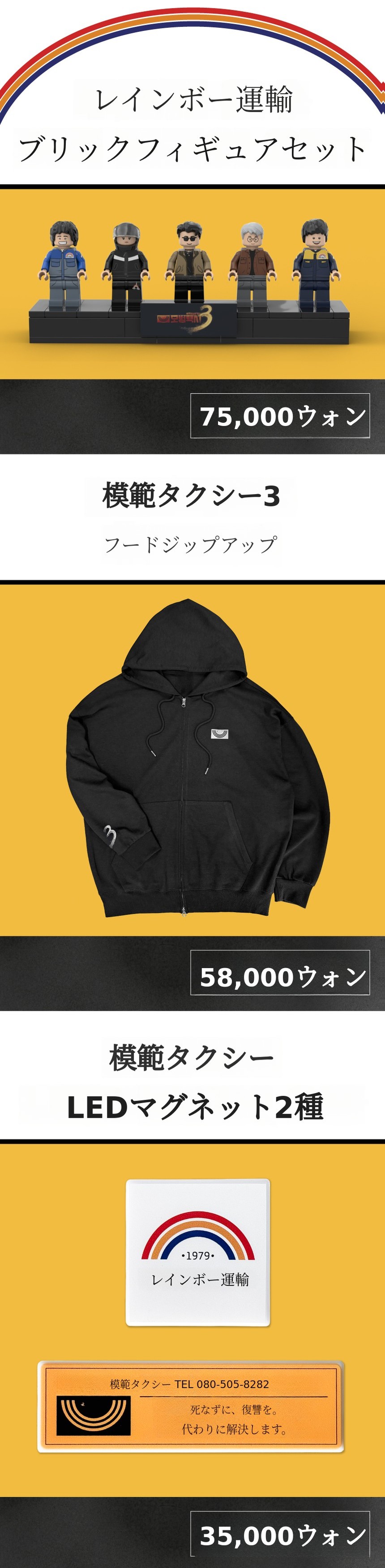 『模範タクシー』のスリリングな正義の実現と痛快なシーン を忘れられないファンの皆さまのために、ドラマの象徴を日常で共にできるグッズとして収めました。今回のプロジェクトは ワディズでのみ単独開催され、単なるグッズを超えて、ドラマの余韻を長く大切にできるよう、企画段階から一つひとつ丁寧に準備しました。ファンの皆さまの温かい応援とご参加をお願いいたします!
