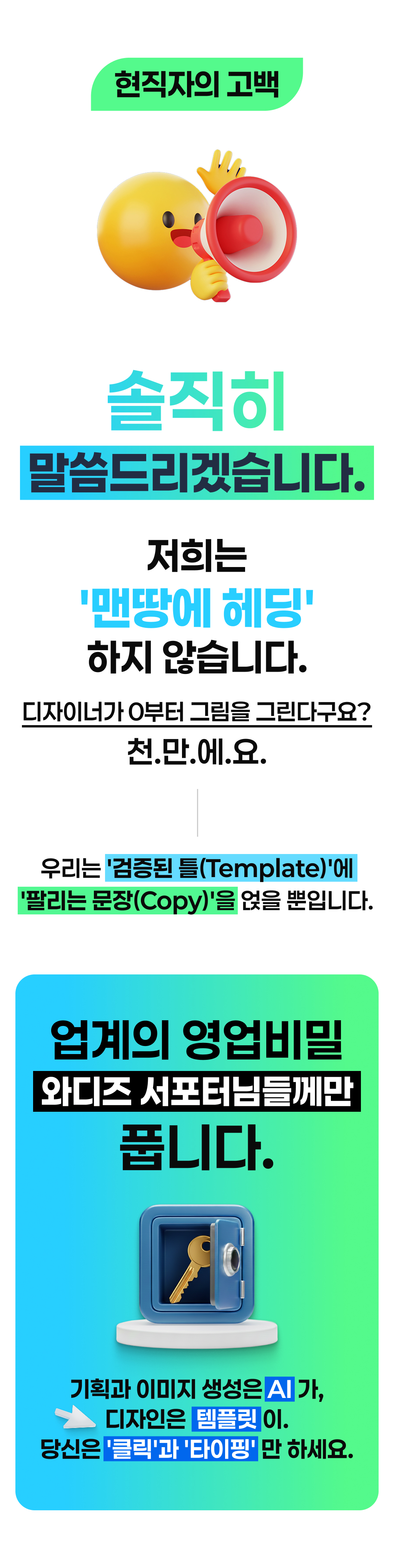 이번 펀딩을 통해 상세페이지 제작이 더 이상 전문가만의 영역이 아니라, 누구나 자신의 아이템을 매력적으로 표현할 수 있는 무기가 될 수 있음을 증명하겠습니다. 와디즈 서포터분들의 성공적인 비즈니스 데뷔를 돕는 가장 든든한 러닝메이트가 되겠습니다.