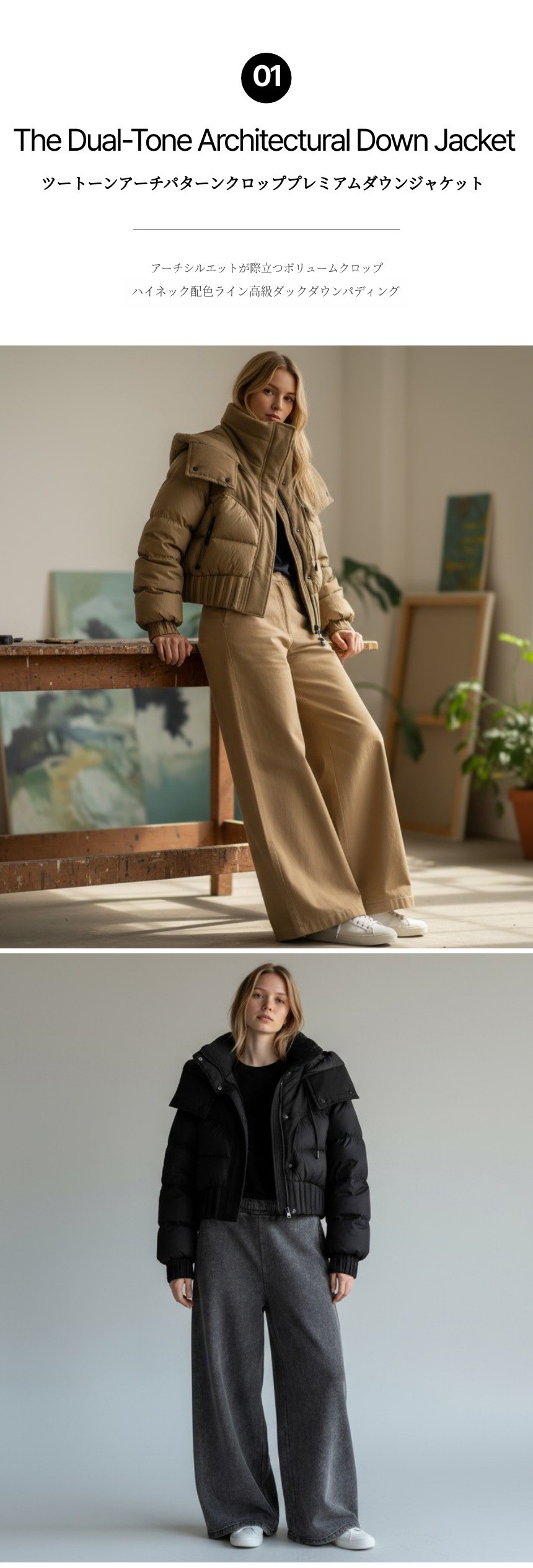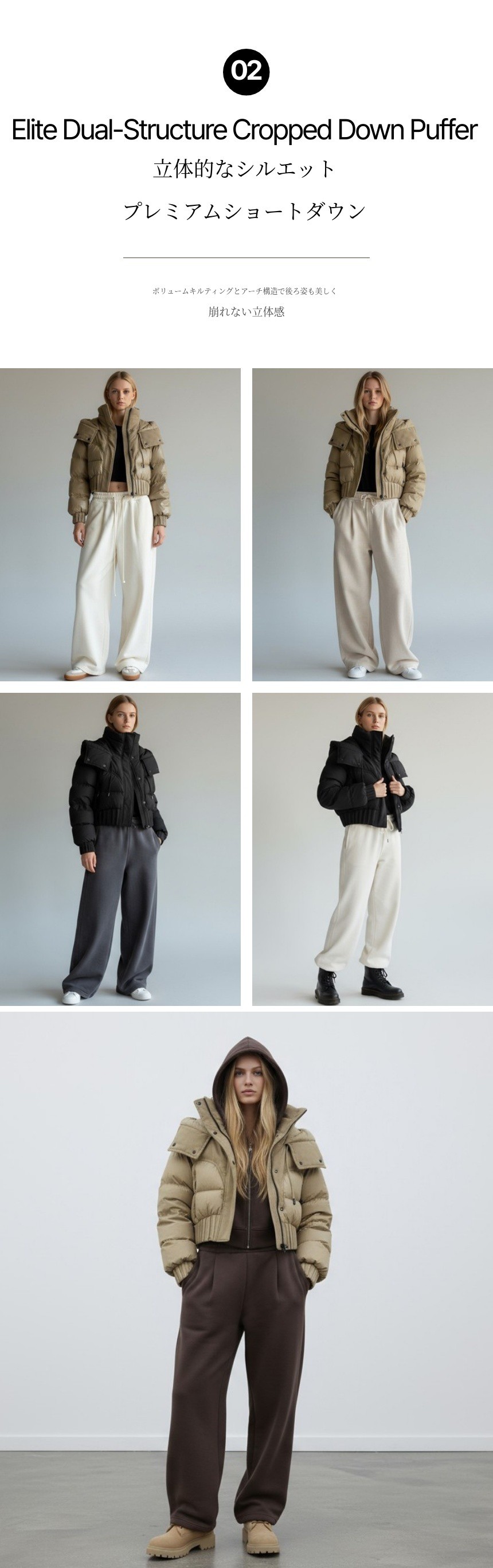 1. 🧥 プレミアムダックダウンクロップパディング - ハイネックと配色テクスチャーの高級感あるデザインです 2. ❄️ 優れた保温性と軽量性 - ダックダウン充填材で暖かく軽いです 3. 🎁 限定2次アンコール実施中 - 流通マージンなしの合理的価格です