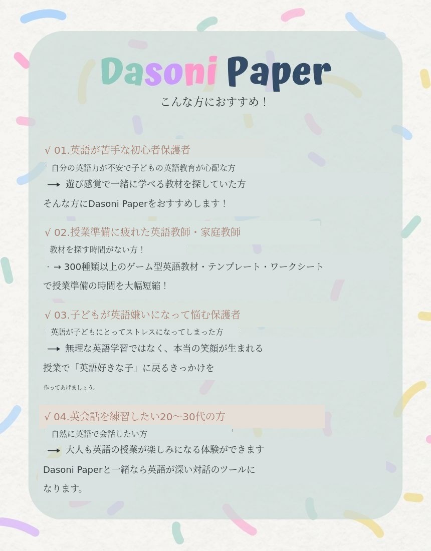 英語にストレスを感じているお子様のために、ダソニーペーパーを選んでみてください。