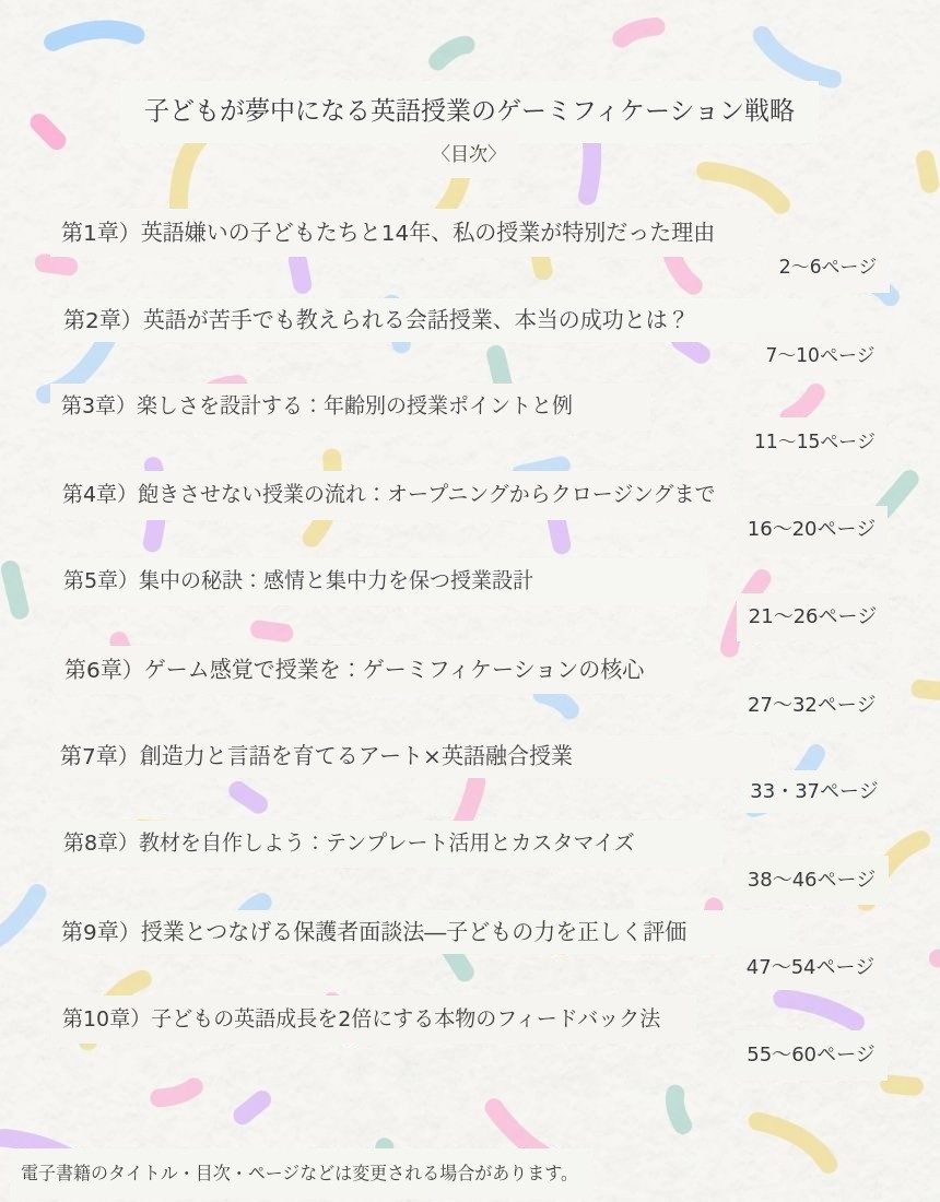 - 「子どもたちが楽しむ英語授業ゲーミフィケーションノウハウ」 電子書籍