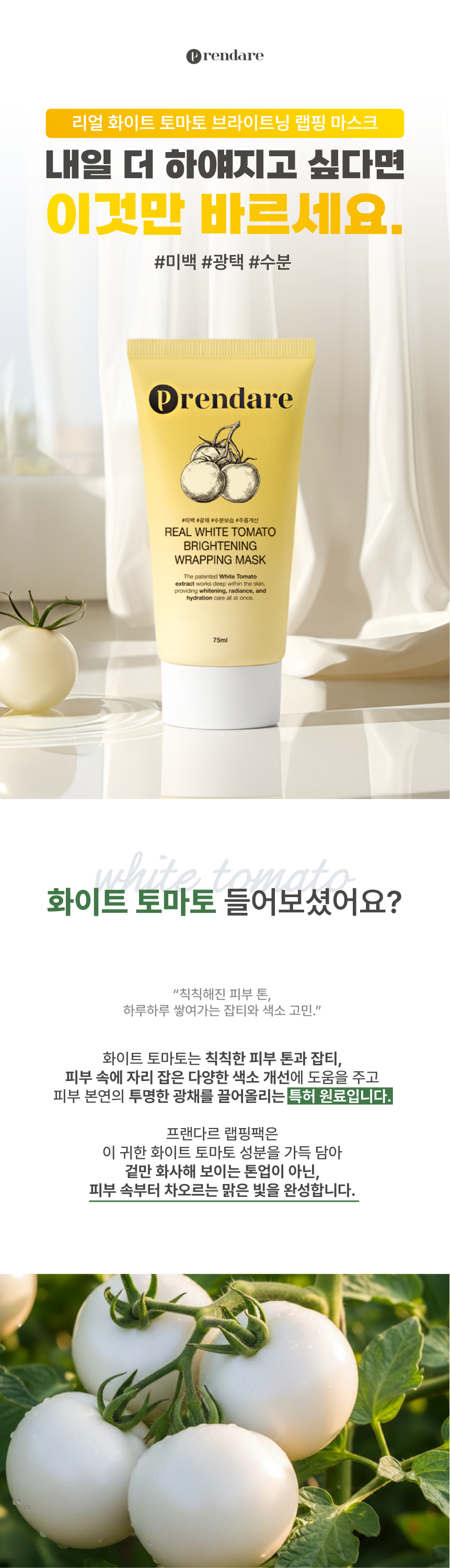 韓国コルマ特許成分「ホワイトトマト」配合の美白&輝きケアラッピングパック prendare