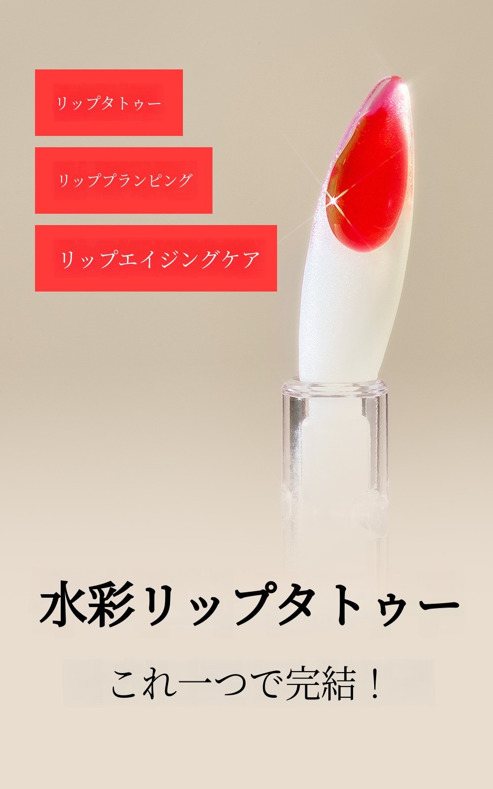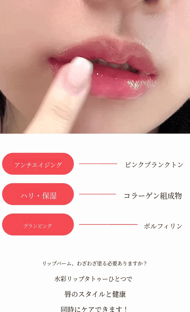 浸透させる役割を果たします。高価なスキンケアに使われる成分を、思い切って水彩リップタトゥーに投入しました。