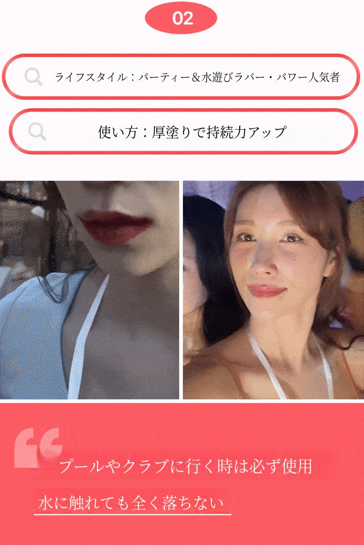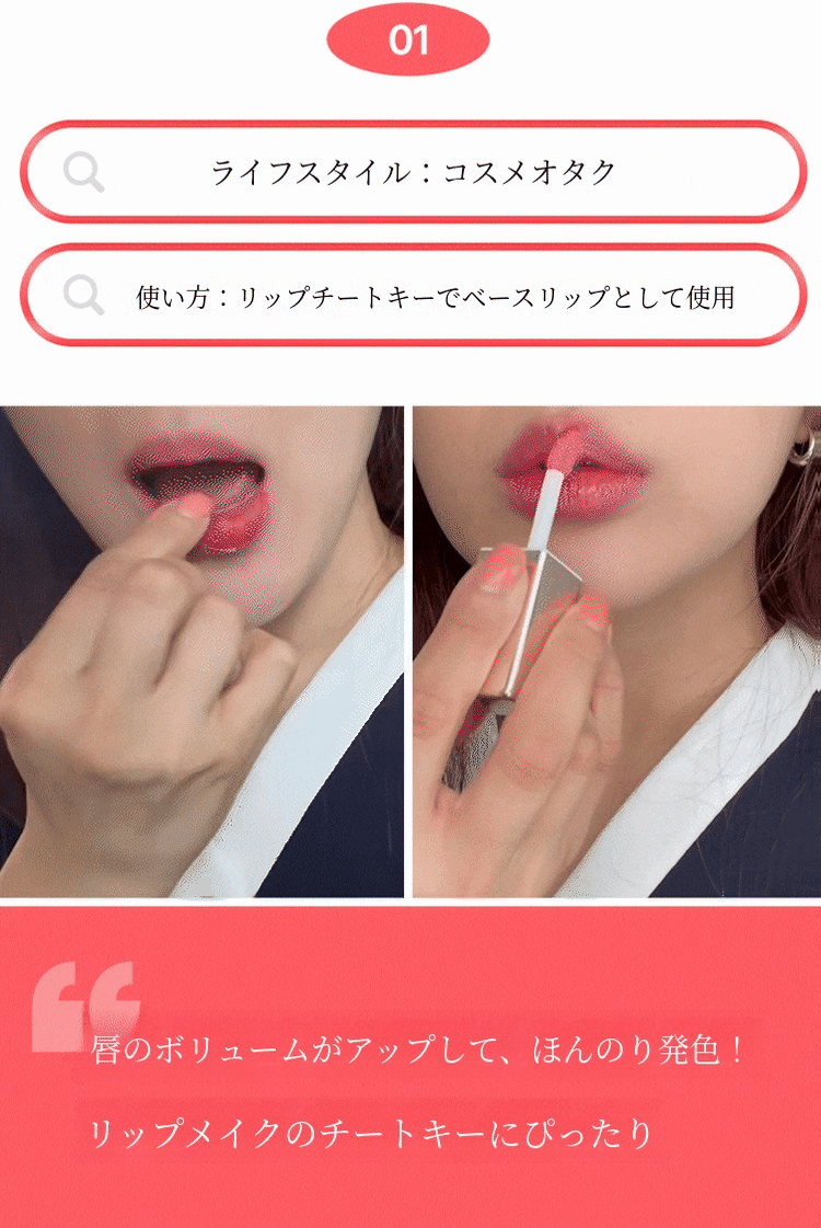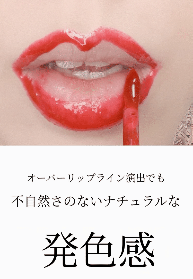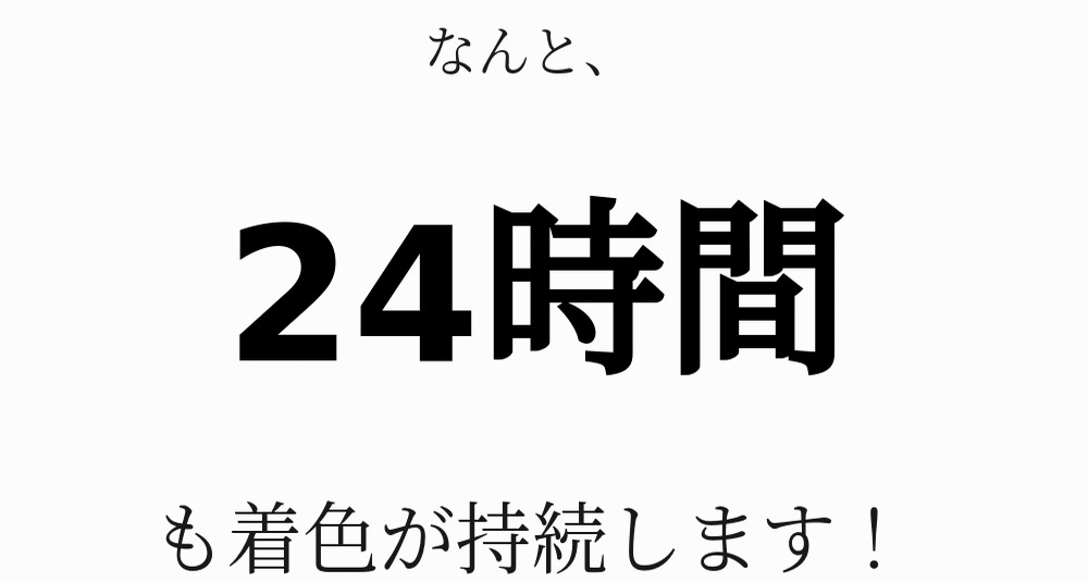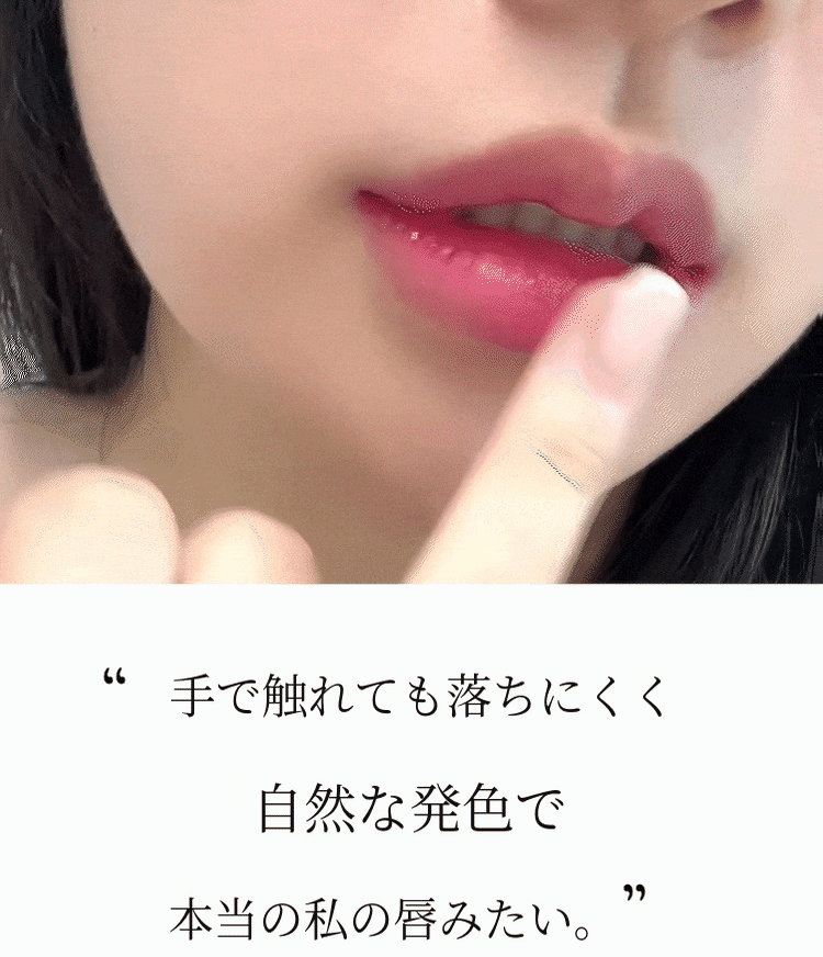 あまりに鮮やかすぎるのは苦手。自然な色味で、なおかつ長時間持続するリップメイクを求める方にも本当におすすめのアイテムになります。24時間唇を染めて「私の唇の形をよりくっきりと、大きく見せます」
