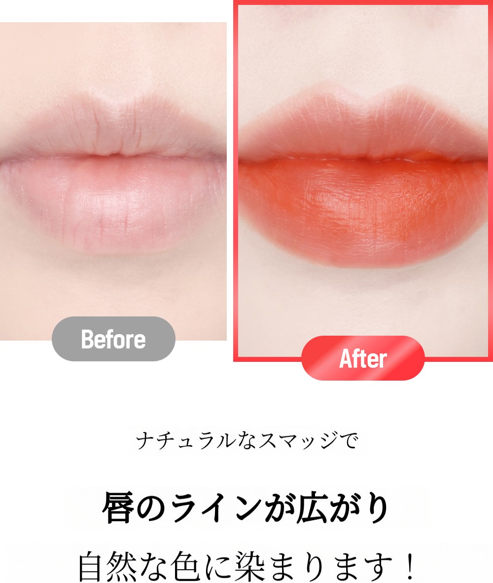 自然に染まる水彩発色で唇を染め、より鮮明でふっくらとした若々しい唇に変えてみてください