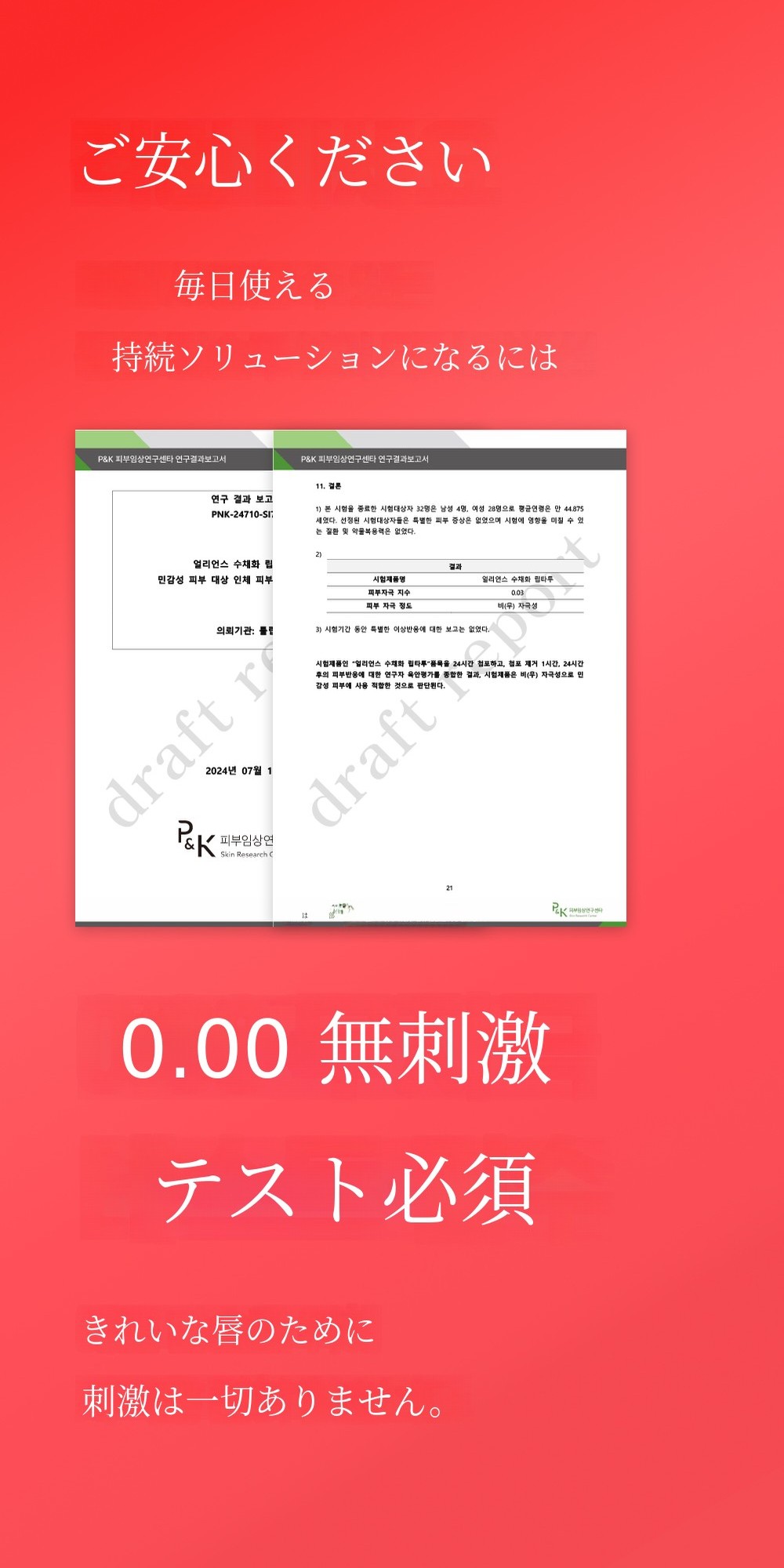 天然色素を配合し、低刺激の臨床試験を受けた製品なので