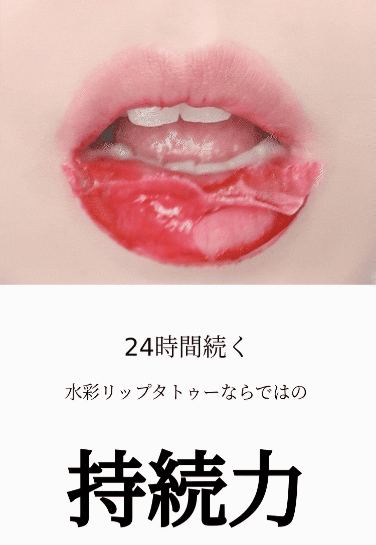 しかし水彩リップタトゥーは自然なカラーで、12時間長くオーバーラインのリップ演出をキープします。