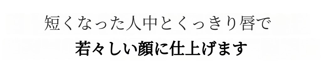 時間とともに崩れていく唇のライン。より間延びして見える中顔面。唇のラインを整えるだけで、若々しい顔が完成します。