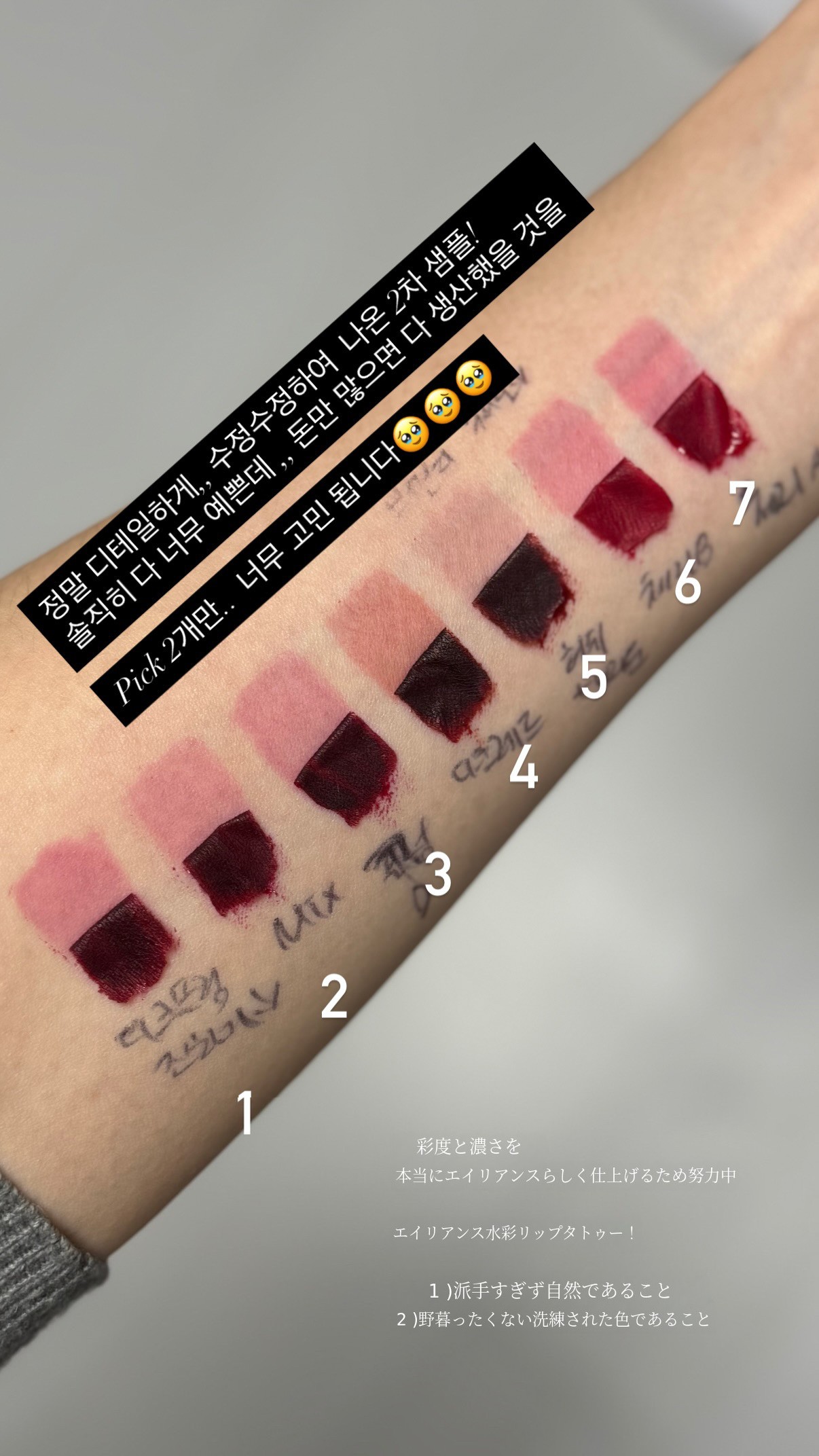 今回 チェリーとプラムの2色を追加で作ることができた理由 やはり、小さなブランドでありながらも、たくさん応援しご使用くださったサポーターの皆さまの関心と愛があったからこそだと思います。第3弾が完売して戻ってきたエイリアンス リップタトゥ。今回もぜひ多くの応援とご関心をお願いいたします:)