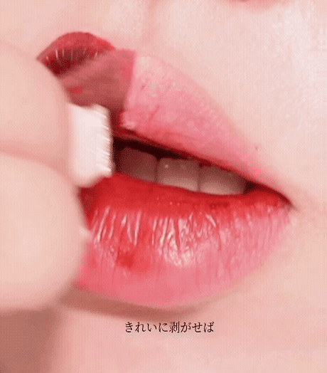 唇全体に自然に色づけた後、ステッカーのように剥がすだけ。下の動画は新色ウィンタープラムを使用したときの発色です。