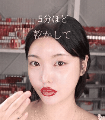 ブラッシュレッドカラーとデューイレッドベリー リップフィットバームを使用した仕上がりです。