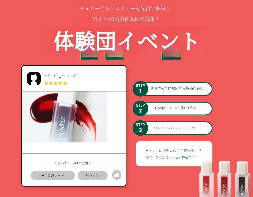 それほど アーリーアンスはサポーターの皆さまの唇に本気で向き合うブランドであるということを知っていただけたら嬉しいです!これからもアーリーアンスのリップタトゥーをより満足してお使いいただけるよう、最善を尽くしていきます。
