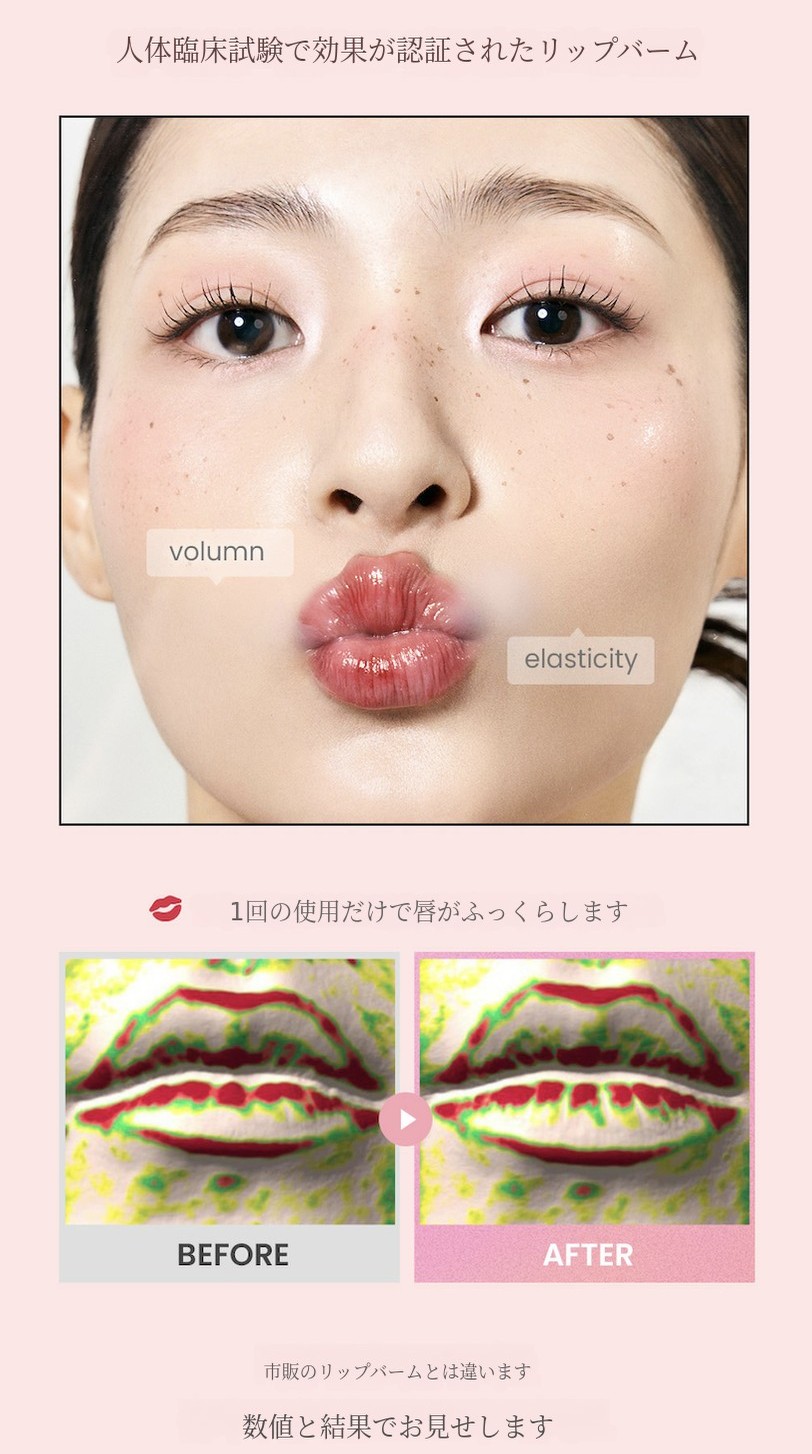 ふっくらさせるため、唇細胞内に抗シワ成分を