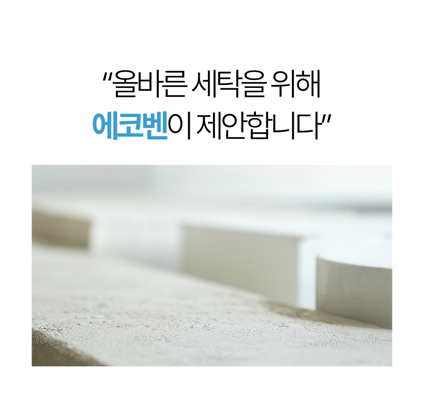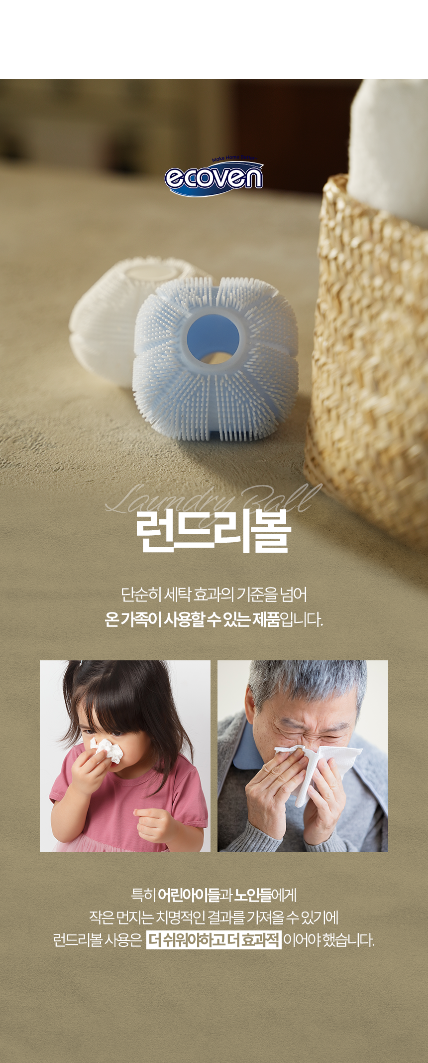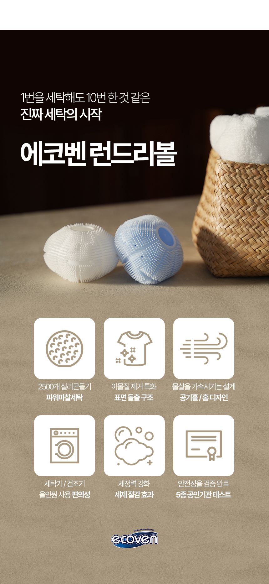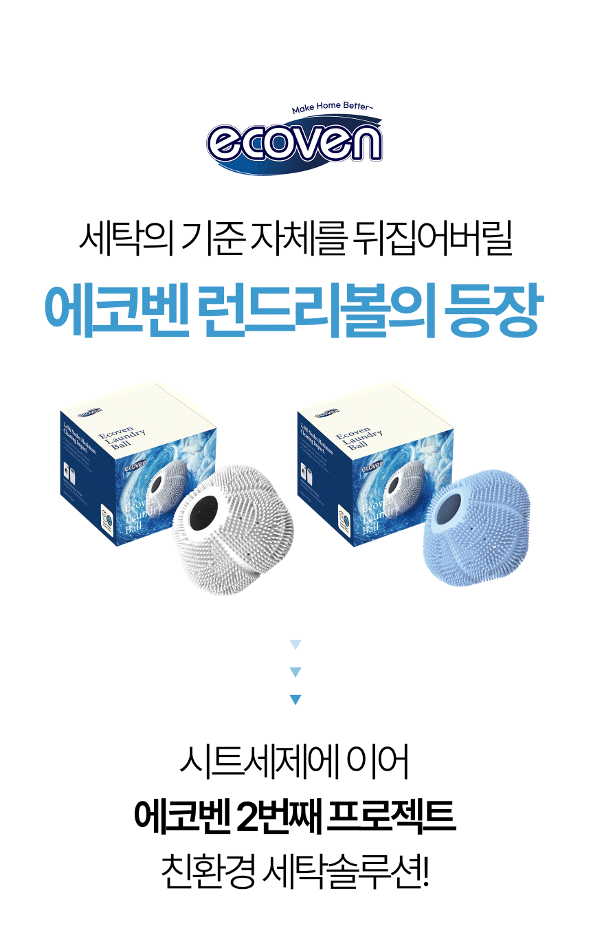 서포터 여러분에게 선보이는 에코벤 런드리볼은 세탁만으로 해결될 수 없는 수많은 고민을 해결하기 위해 다년간 개발을 통해 탄생한 제품입니다.
